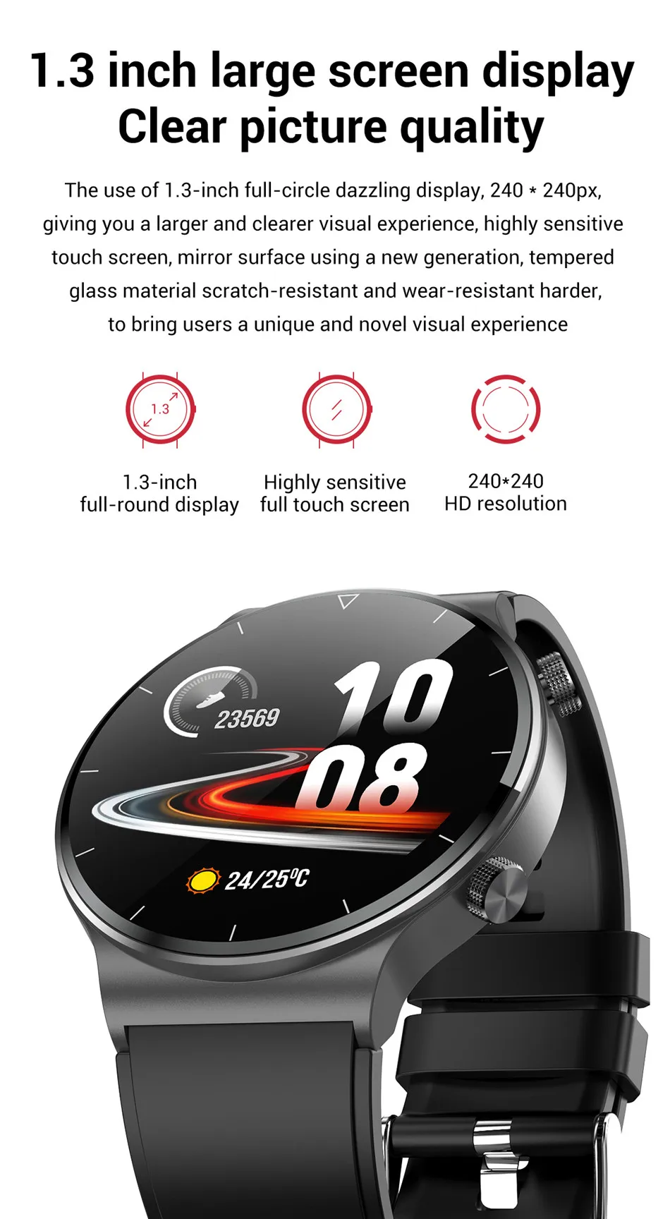 Использование 1,3-дюймовый полного круга ослепительно дисплеем, 240 * 240px, которые позволят вам получить больше и яснее визуальный опыт с высокими показателями sensitivetouch экран, зеркальная поверхность с использованием нового поколения, закалённое стекло устойчиво к царапинам и износостойкое, чтобы предоставить пользователям уникальный и новый визуальный опыт