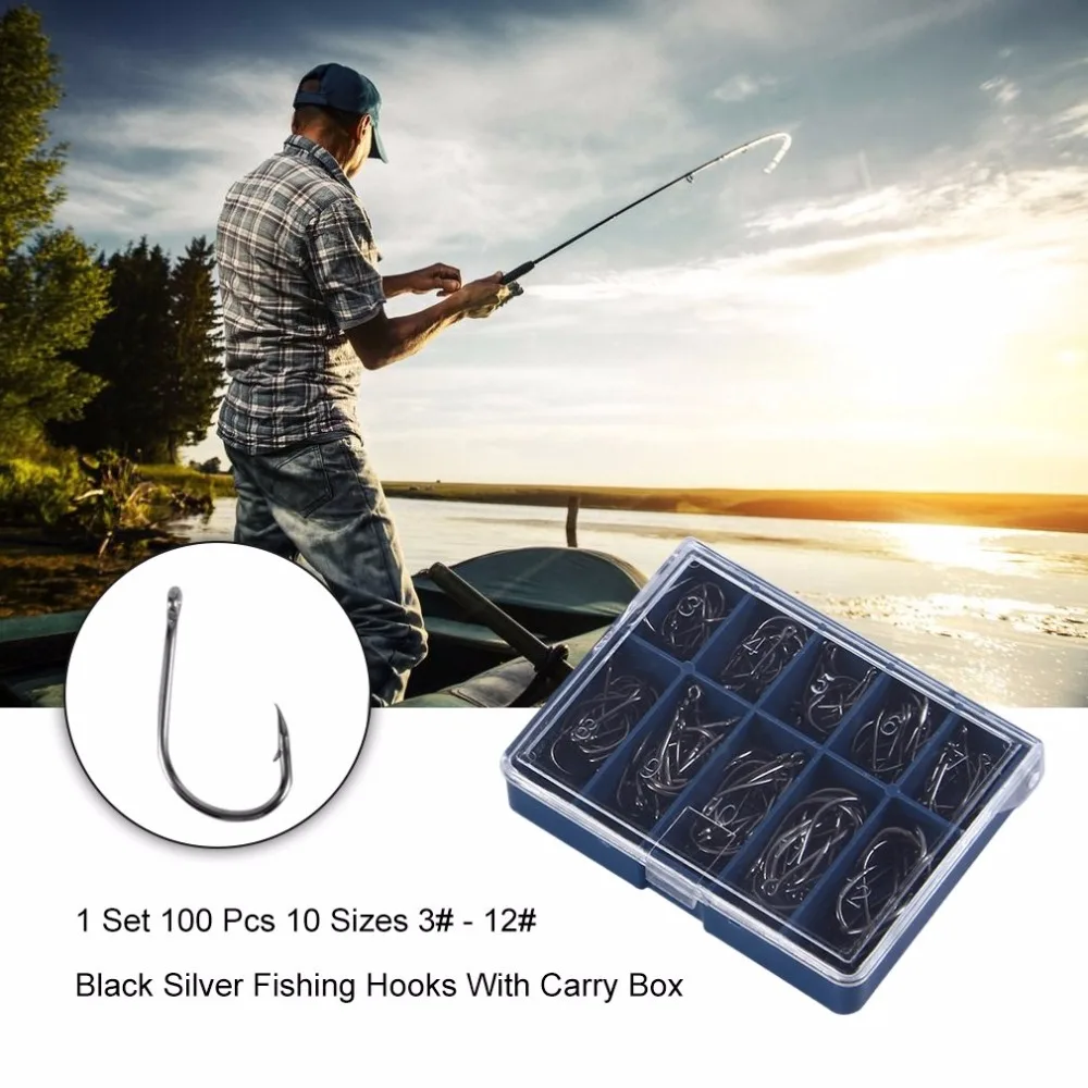 100 шт.лот 3 #-12 # рыболовный крючок из углеродистой стали, рыболовные крючки, прочные рыболовные крючки с отверстием для ловли карпа, коробка для рыболовных снастей, новое поступление