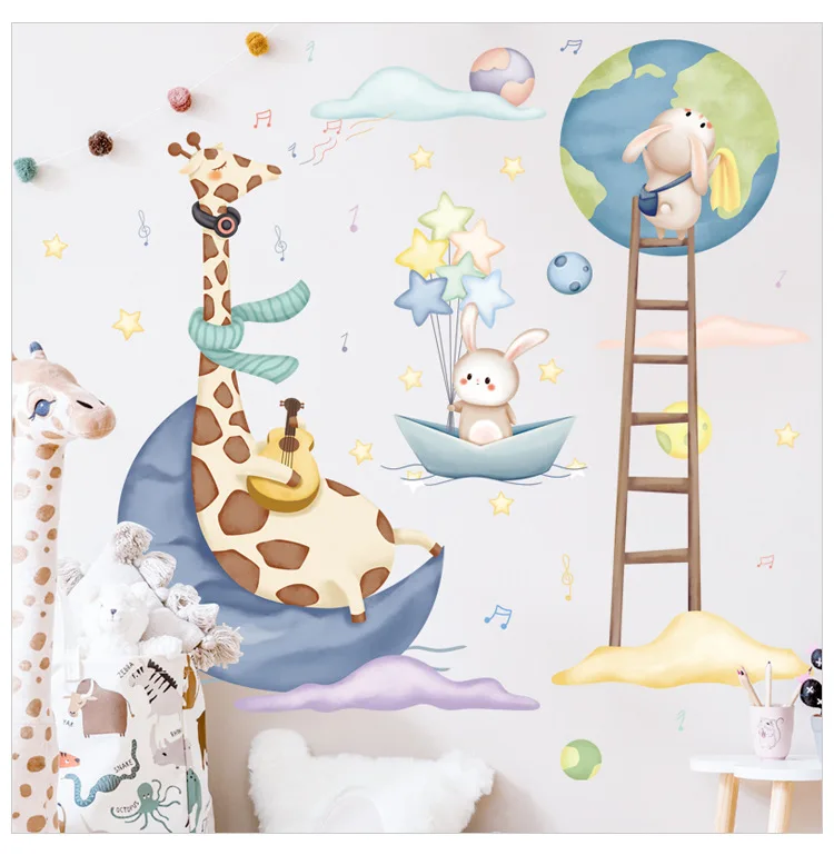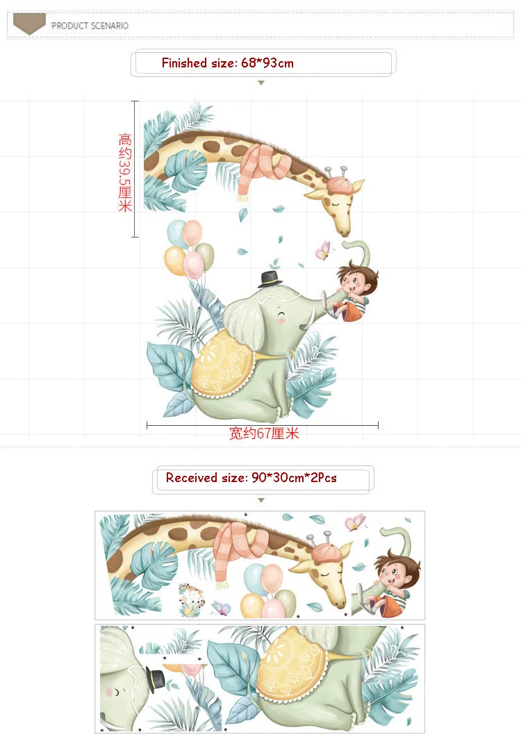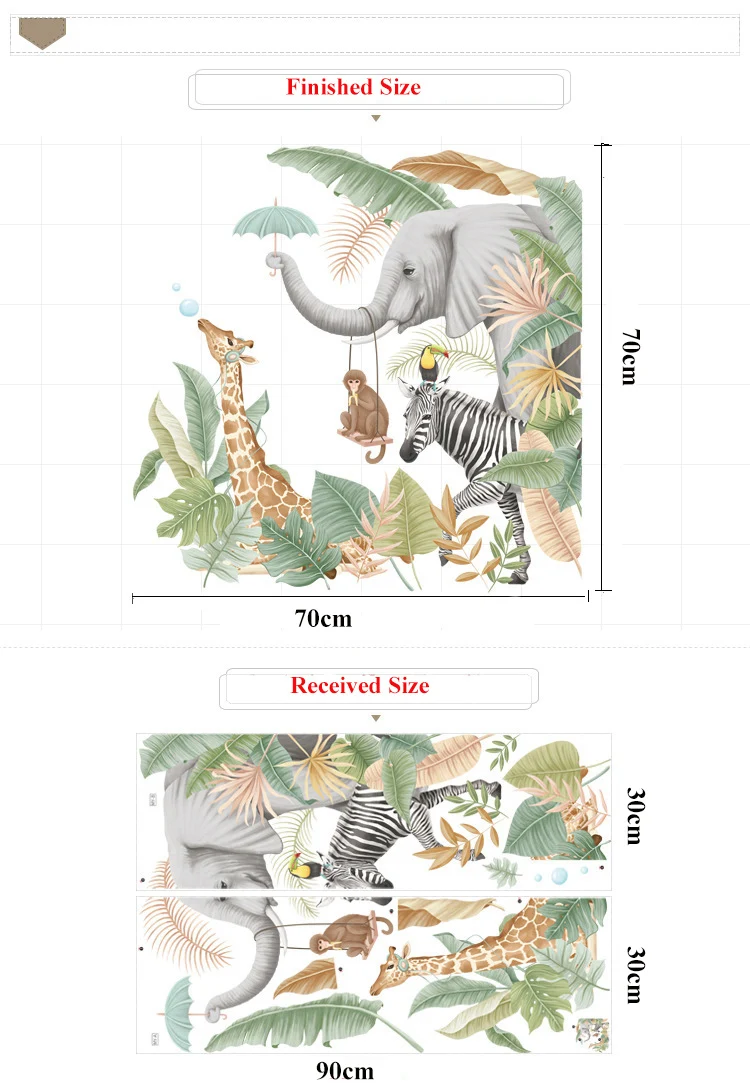 Большие настенные наклейки в скандинавском стиле с изображением животных в джунглях для детской комнаты, украшение для спальни и мальчиков, слон, жираф, растения, обои, плакаты