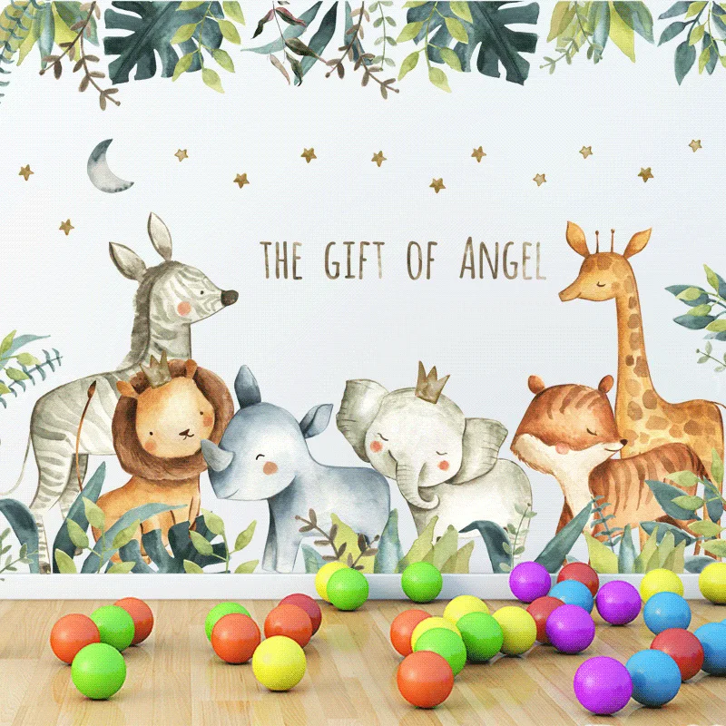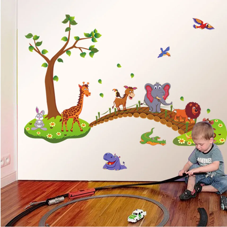 Животные джунглей наклейки на стену для детской комнаты для мальчиков комнаты спальни гостиной украшения