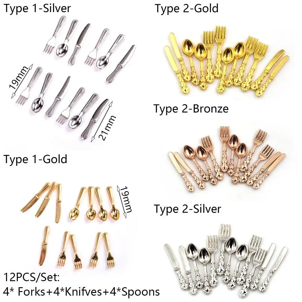 12 шт. 1:12 кукольный дом миниатюрный аксессуары вилка нож ложка ми...
