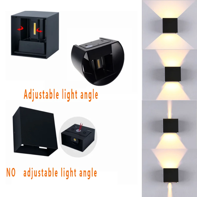 Наружная Водонепроницаемая светодиодная алюминиевая настенная лампа lp65, внутренний и наружный регулируемый угол луча, украшение для балкона, сада, крыльца, спальни