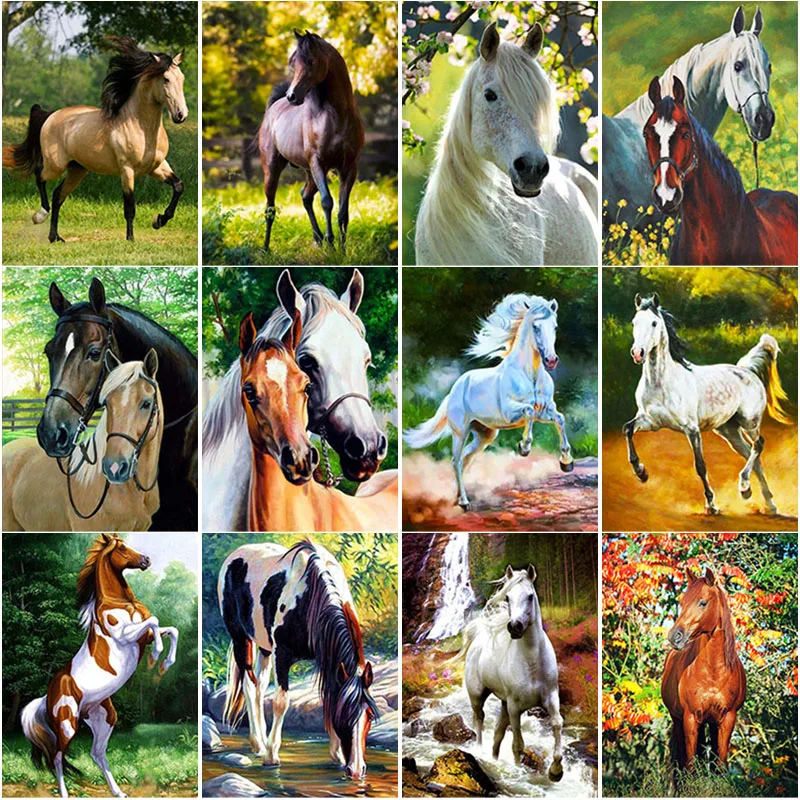 5D алмазная живопись сделай сам, лошадиный пейзаж, полноразмернаякр...