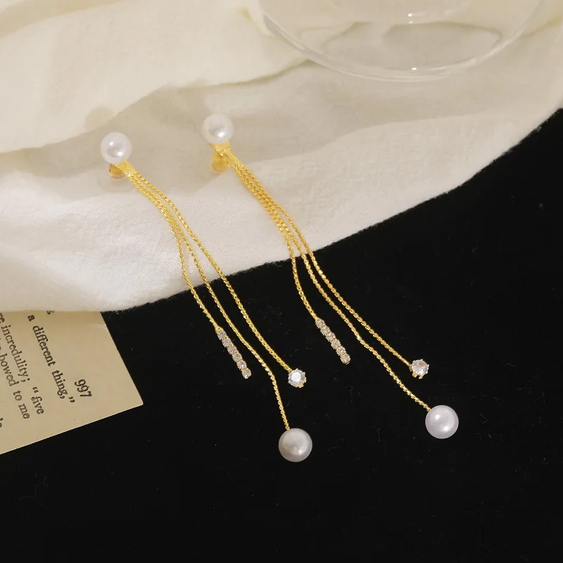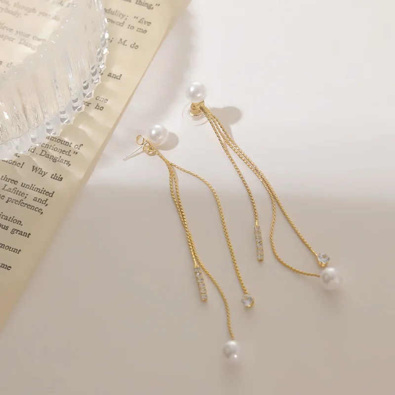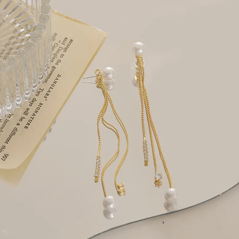 Милые серьги для девочек, новые модные Универсальные элегантные темпераментные длинные серьги с кисточками и жемчугом и кристаллами, женские серьги от производителя