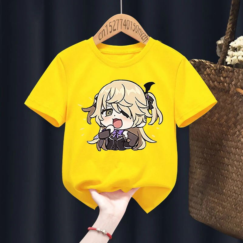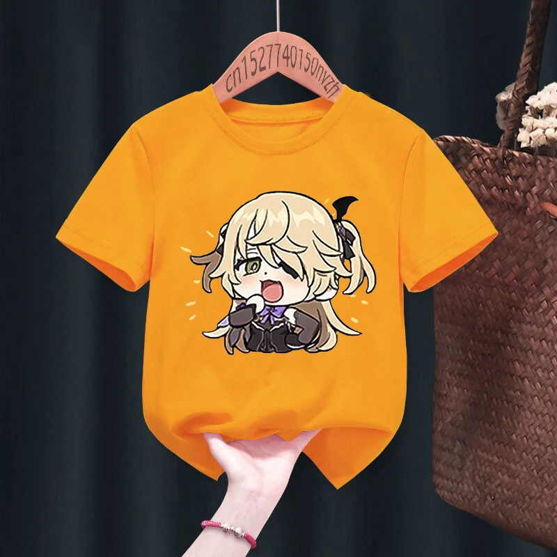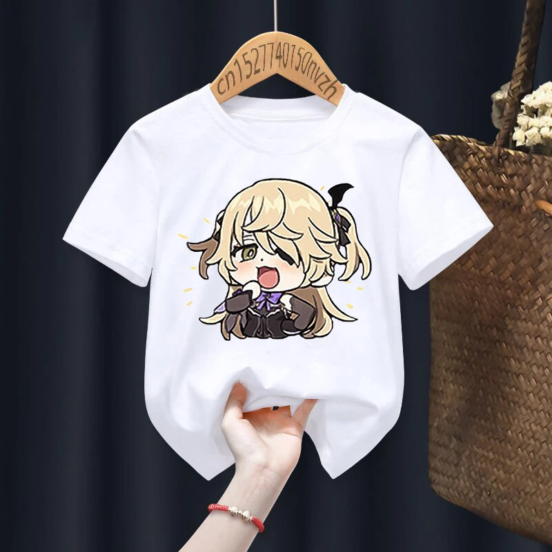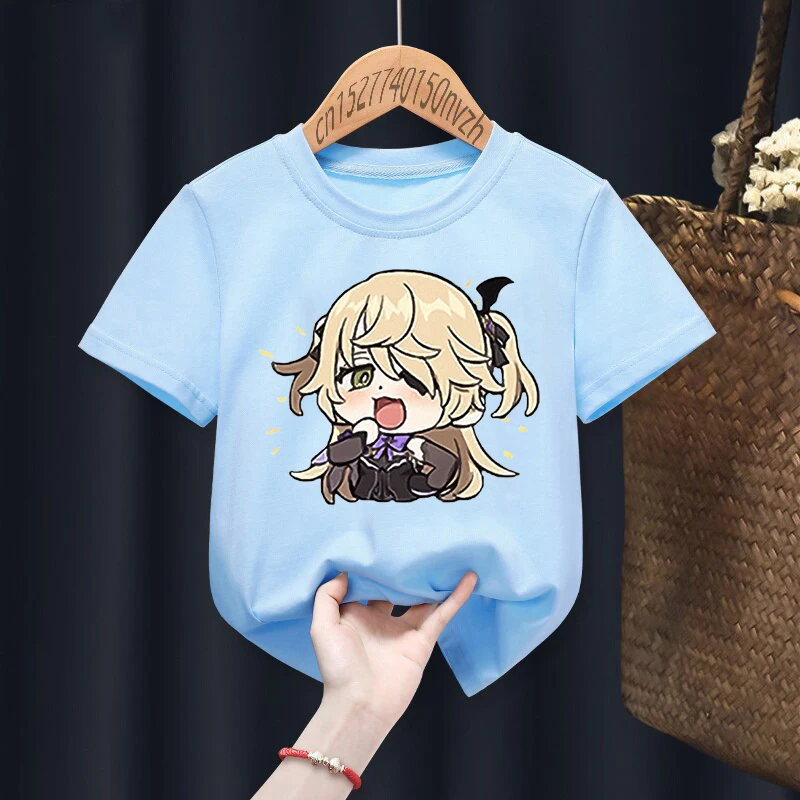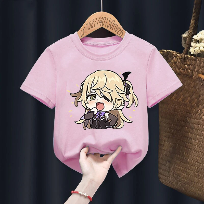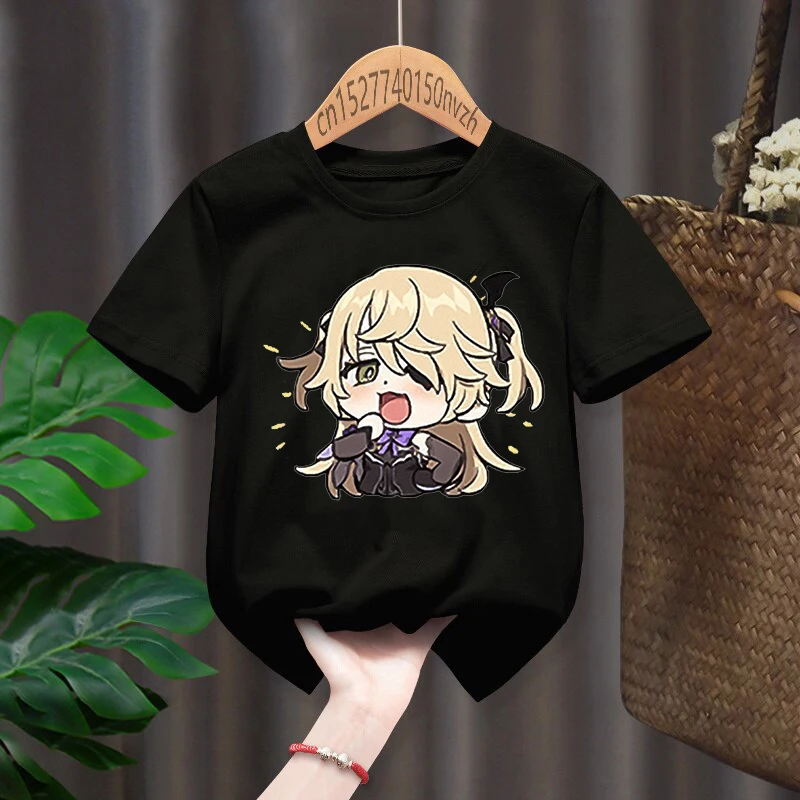 Genshin Impact Fischl принт красная фотография детский черный Харадзюку кавайная Одежда для мальчиков и девочек топы подарок, Прямая поставка