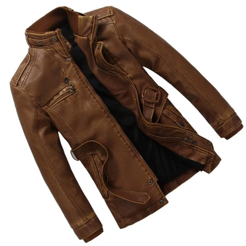 Модная новая Толстая кожаная мужская куртка для осени и зимы, мужск...