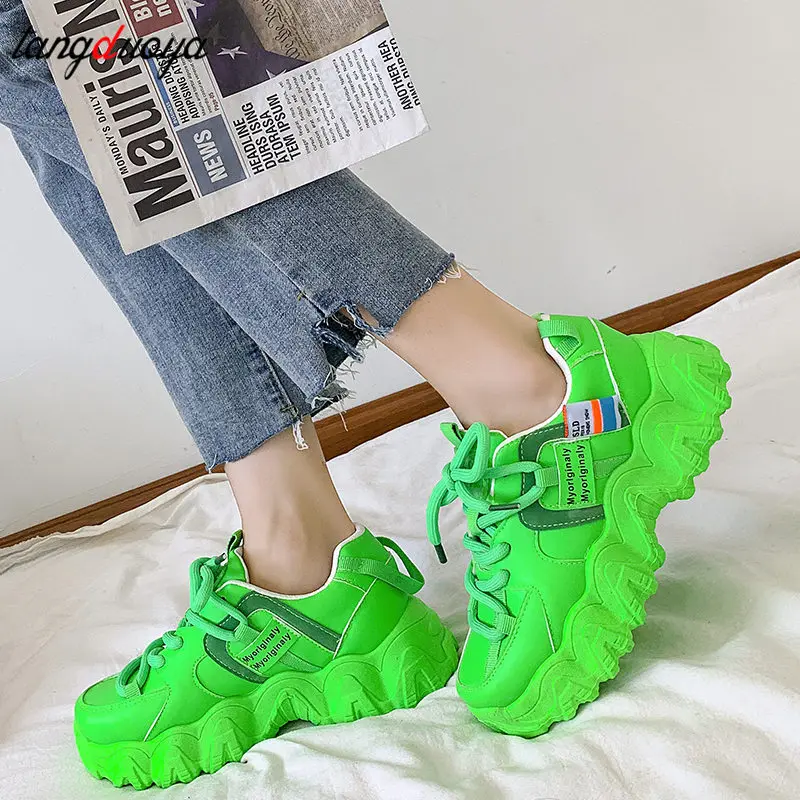Кроссовки женские на платформе, повседневная обувь на толстой подошве, теннисные туфли на массивной подошве, белые, зеленые, 2021