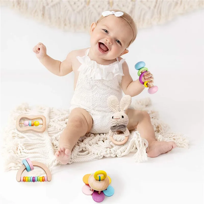 Развивающая деревянная погремушка для детей 0-12 месяцев, безопасна...