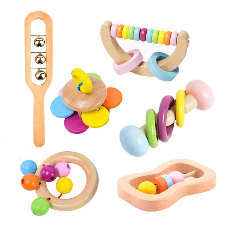 Детские игры игрушки Монтессори деревянная погремушка для малышей образовательная погремушка для детской кроватки игрушки деревянные детские игрушки-погремушки 0-12 месяцев