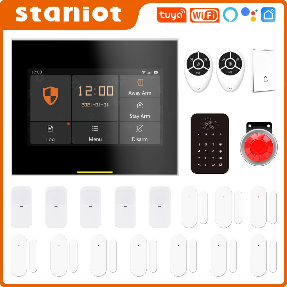 Беспроводная система охранной сигнализации Staniot с Wi-Fi, 21 комплект, 433 МГц, Google Home, взломщик, ЖК-сенсорный экран, поддержка Tuya Smart Life, приложение с Alexa,Поддержка русского языка и голоса