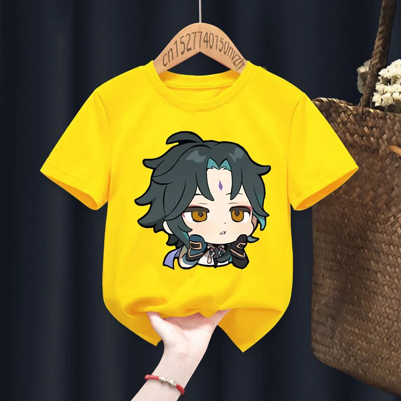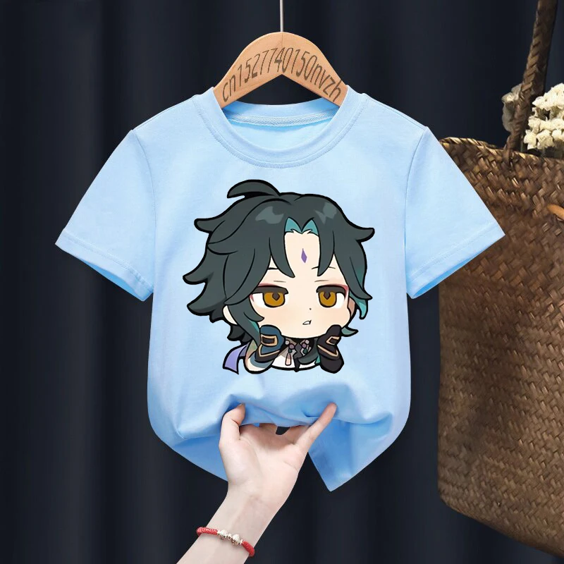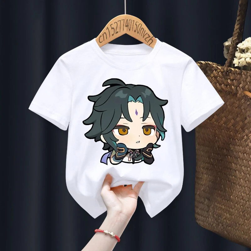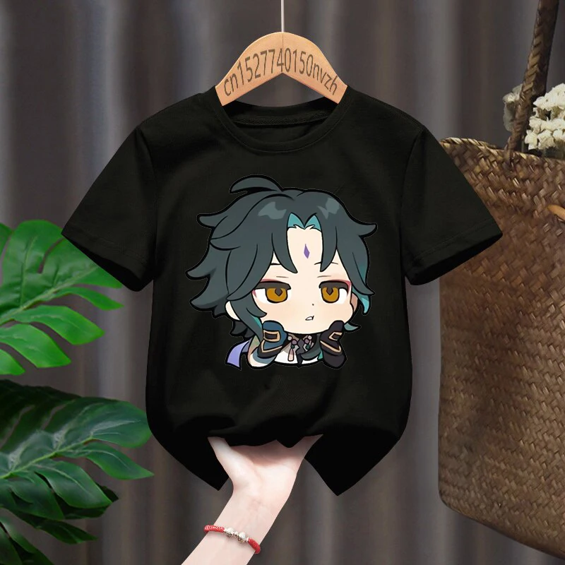 Xiao Genshin ударный принт красная фотография детский черный Харадзюку кавайная одежда топы для мальчиков и девочек подарок, Прямая поставка