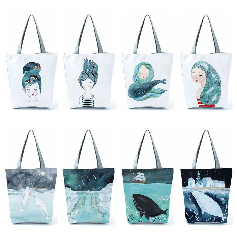 Graphic DesignFresh Painting Cute Whale Sea Series Handbag