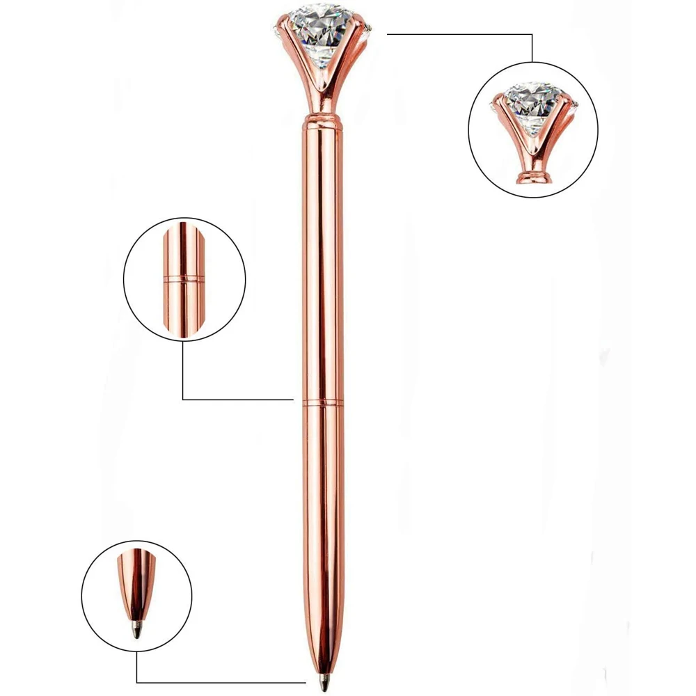 100 шт.лот большая металлическая шариковая ручка с кристаллами и бриллиантами кольцо свадебный подарок Офисные шариковые ручки черные синие чернила бесплатный логотип на заказ