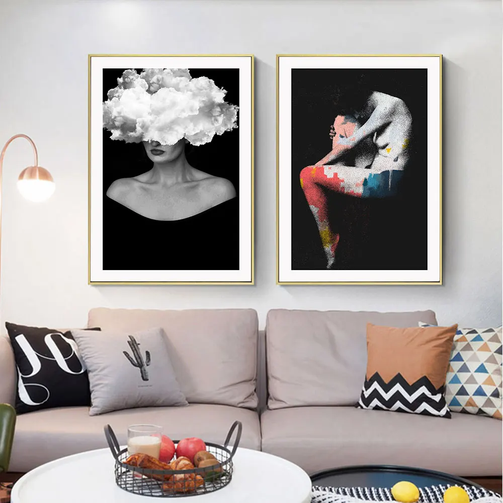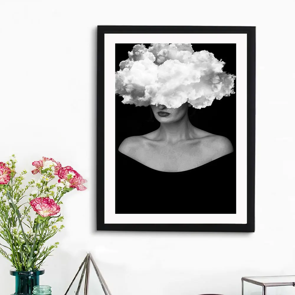 Модная фотография постер женщины скандинавский Холст Картина черная...