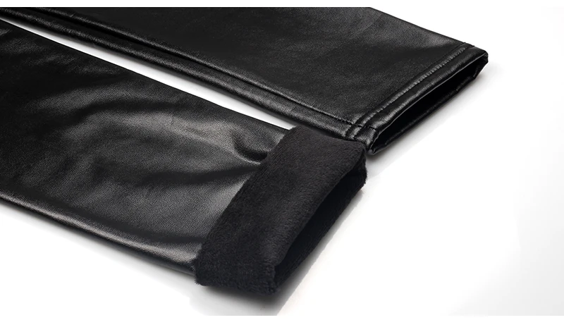 Женские зимние кожаные брюки, черные облегающие леггинсы с высокой ...