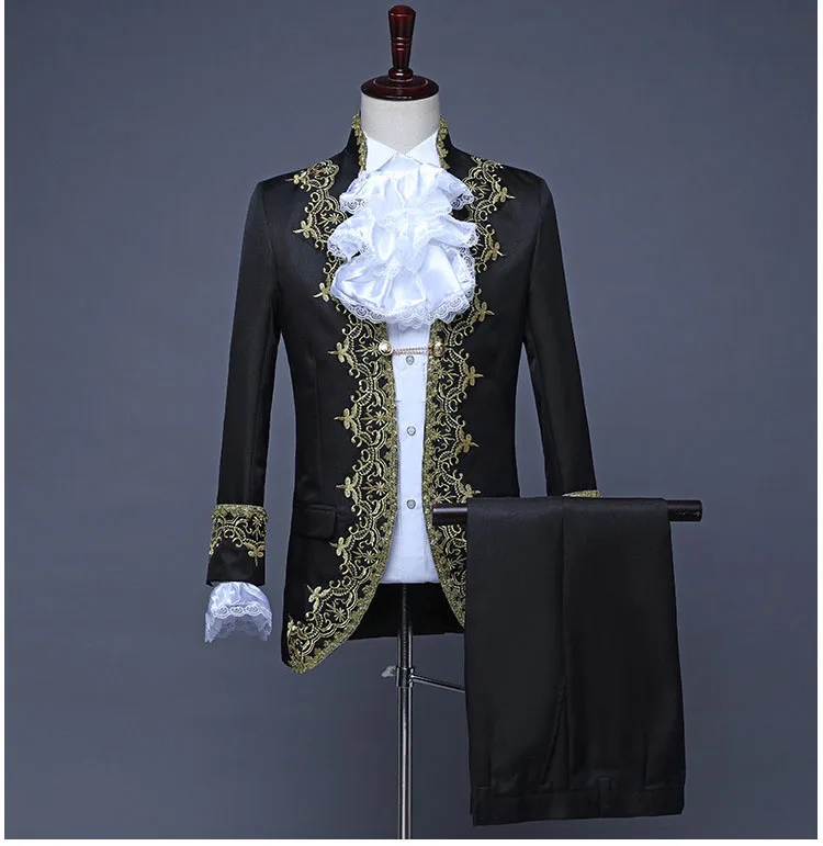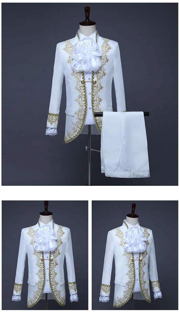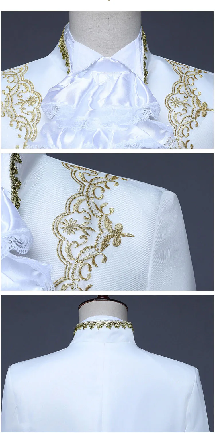 Мужской костюм из двух предметов с золотистой вышивкой (пиджак + брюки), костюм дворцового дворца принца, вечернее свадебное платье, вечернее платье, смокинг, костюм для мужчин