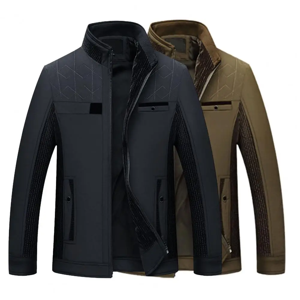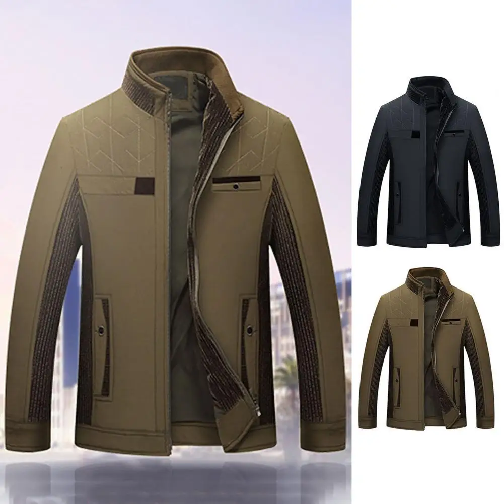 Мужское пальто с воротником-стойкой, ветрозащитная однотонная Повседневная куртка с открытой передней частью для мужчин среднего возраста, для осени и зимы