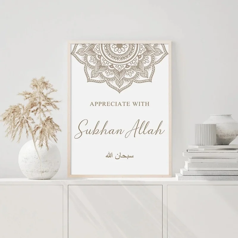 Картина на холсте в стиле бохо, с изображением Аллаха, бежевая, Цве...
