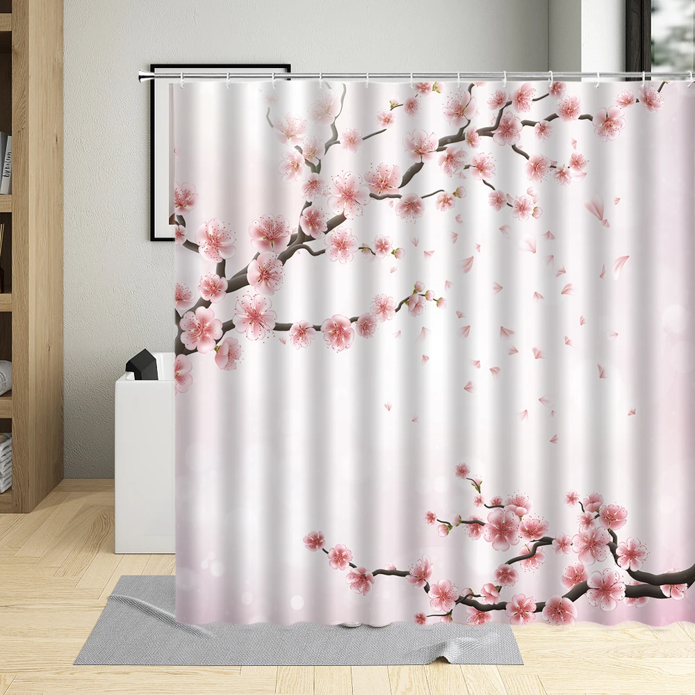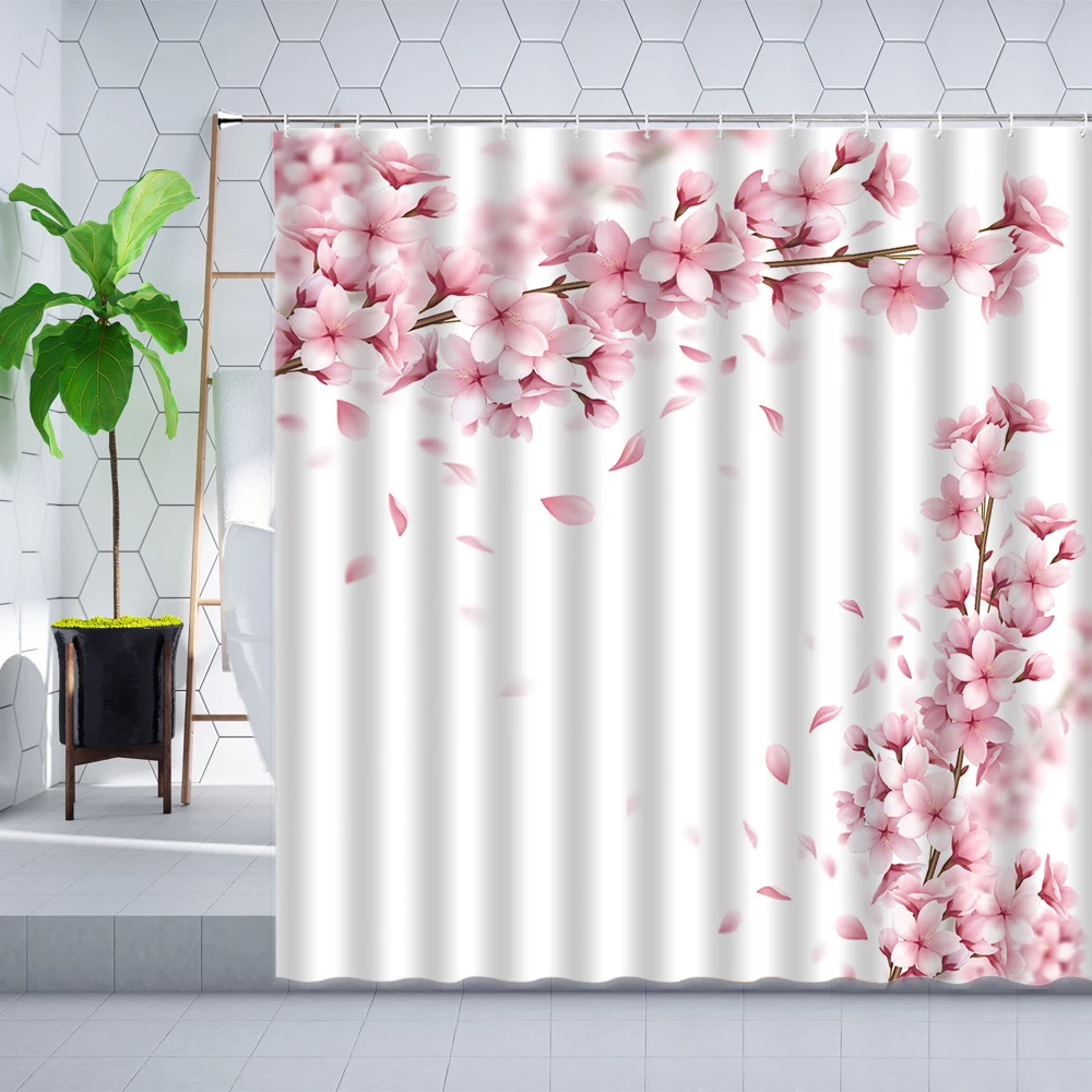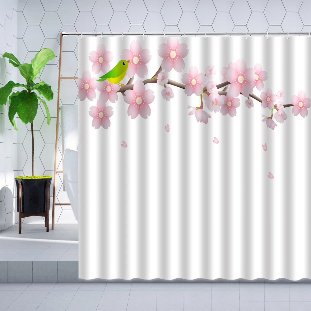 Штора для душа с розовым цветком вишни, занавеска для ванной с белым принтом в виде цветка персика, цветов, растений, набор с экраном