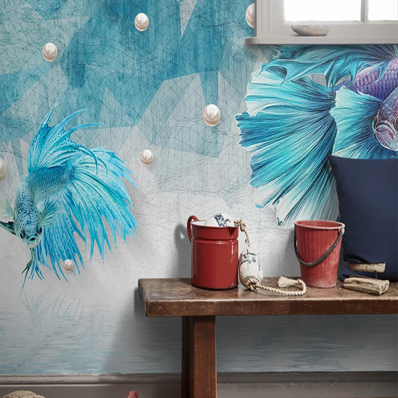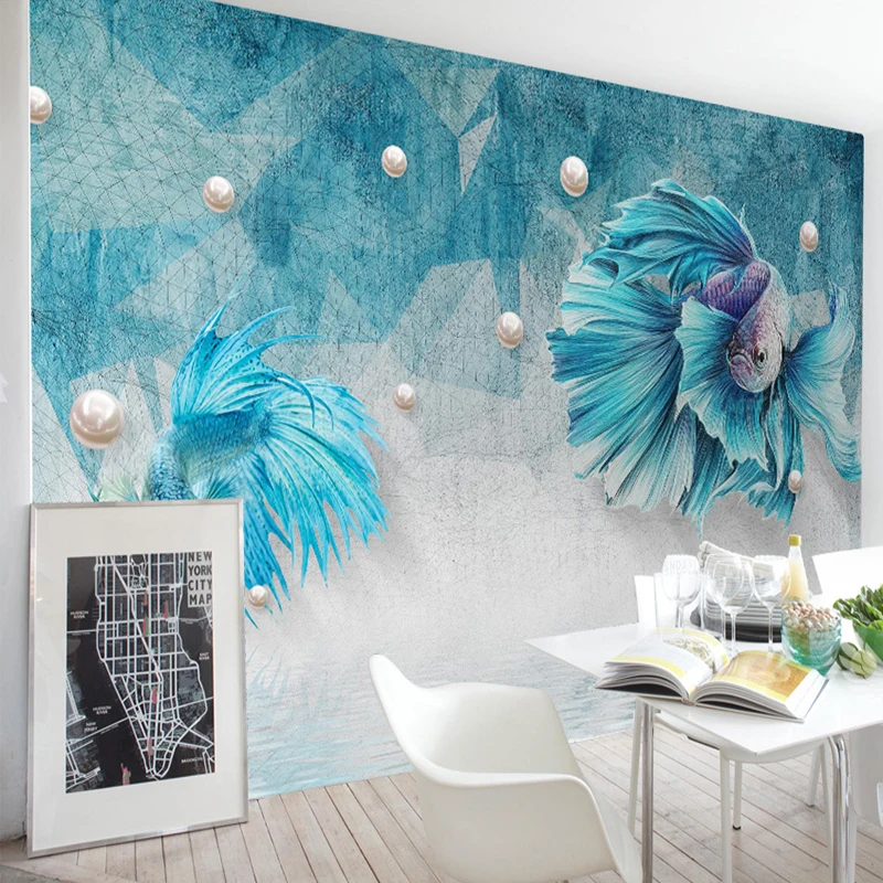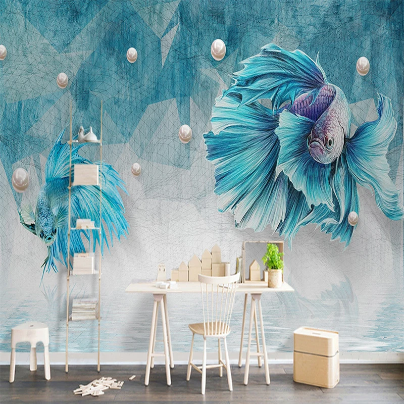Пользовательские 3D темно-синие абстрактные линии, ювелирные изделия в стиле Гуппи с рыбками, фоновые обои для телевизора, художественная роспись, настенная роспись, дизайн для ребенка