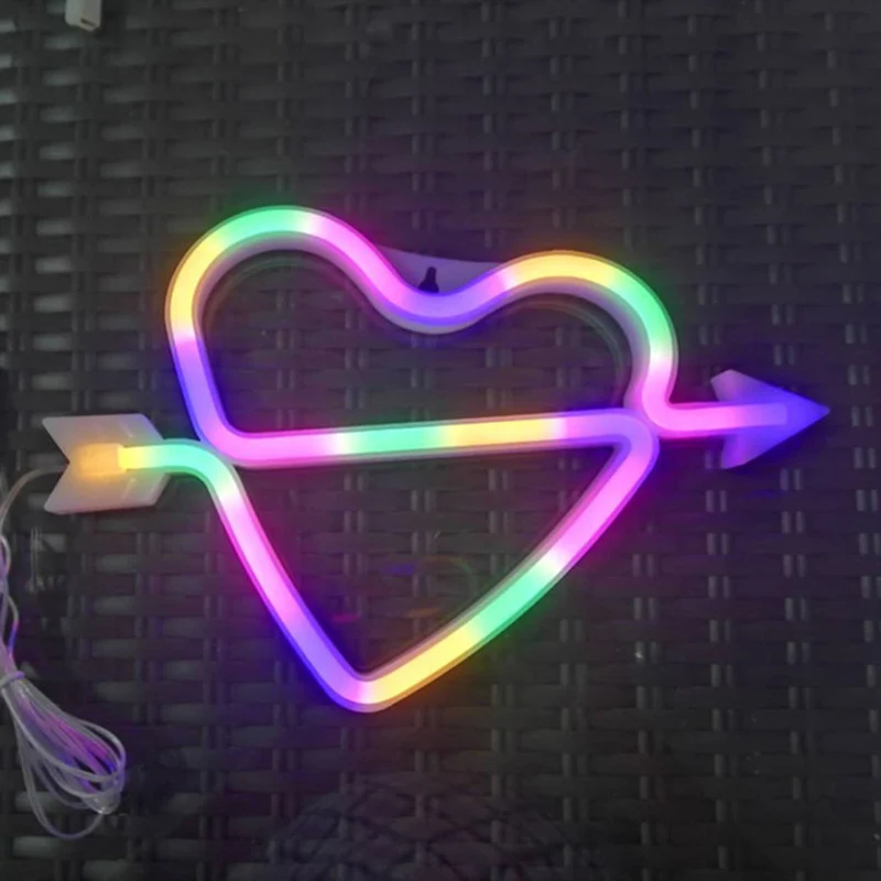 Светодиодные неосветодиодный вывески в форме сердца, сказочный Купидон, декоративная подсветка для комнаты, стен, стола, дисплея, декора