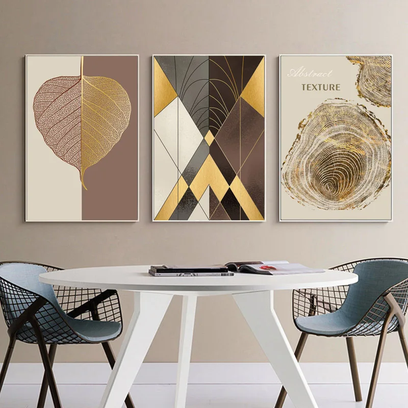 Настенные художественные принты с золотыми листьями, Роскошный домашний декор, современные абстрактные картины для гостиной, безрамные интерьерные картины