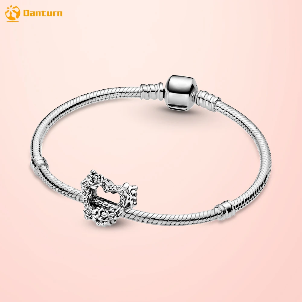 Женский браслет из серебра 100% пробы, с открытым сердцем и цветами розы