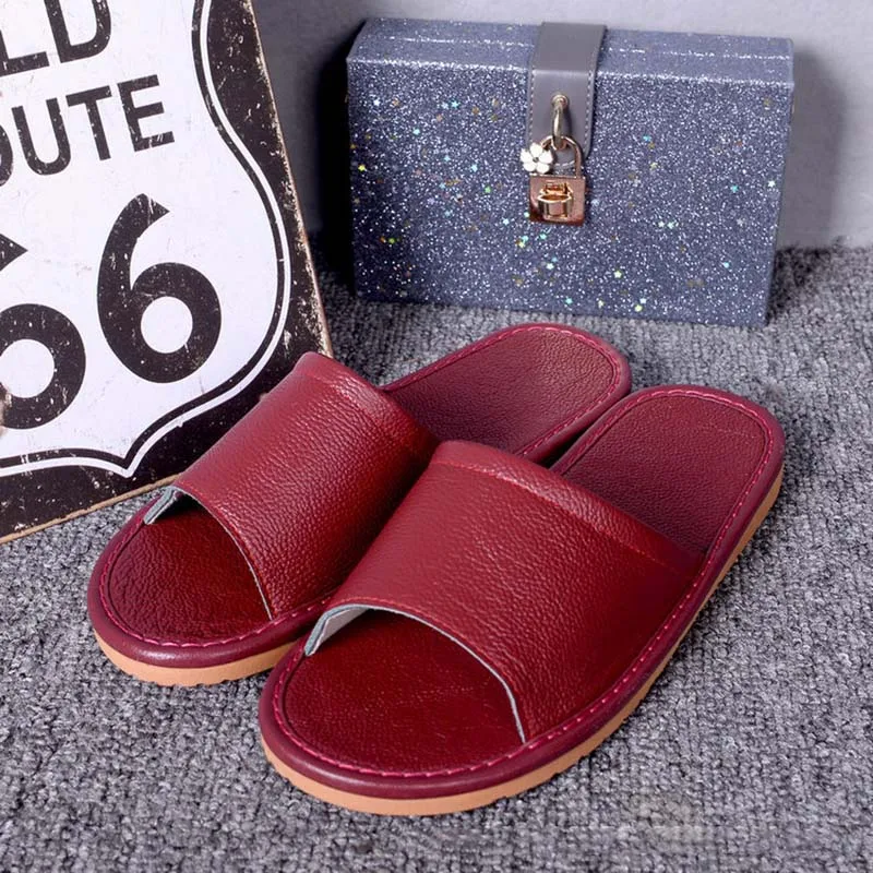 Шлепанцы мужскиеженские кожаные, роскошные мягкие домашние тапки, плоская подошва, модные сандалии, летняя обувь