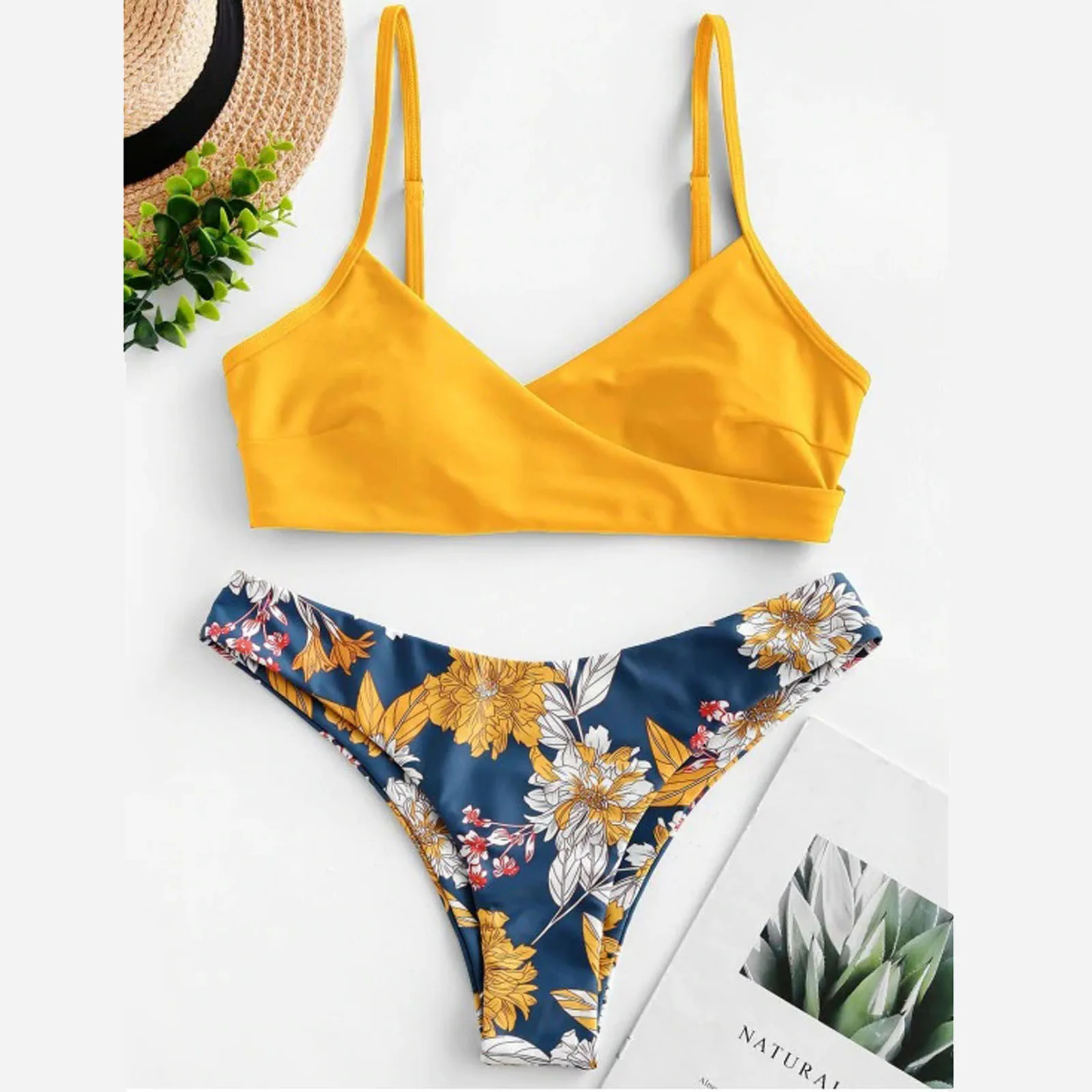 Летний бразильский купальник, женский купальник из двух частей, комплекты с разрезом и цветочным принтом, купальник, бикини, бикини 2021, женское бикини