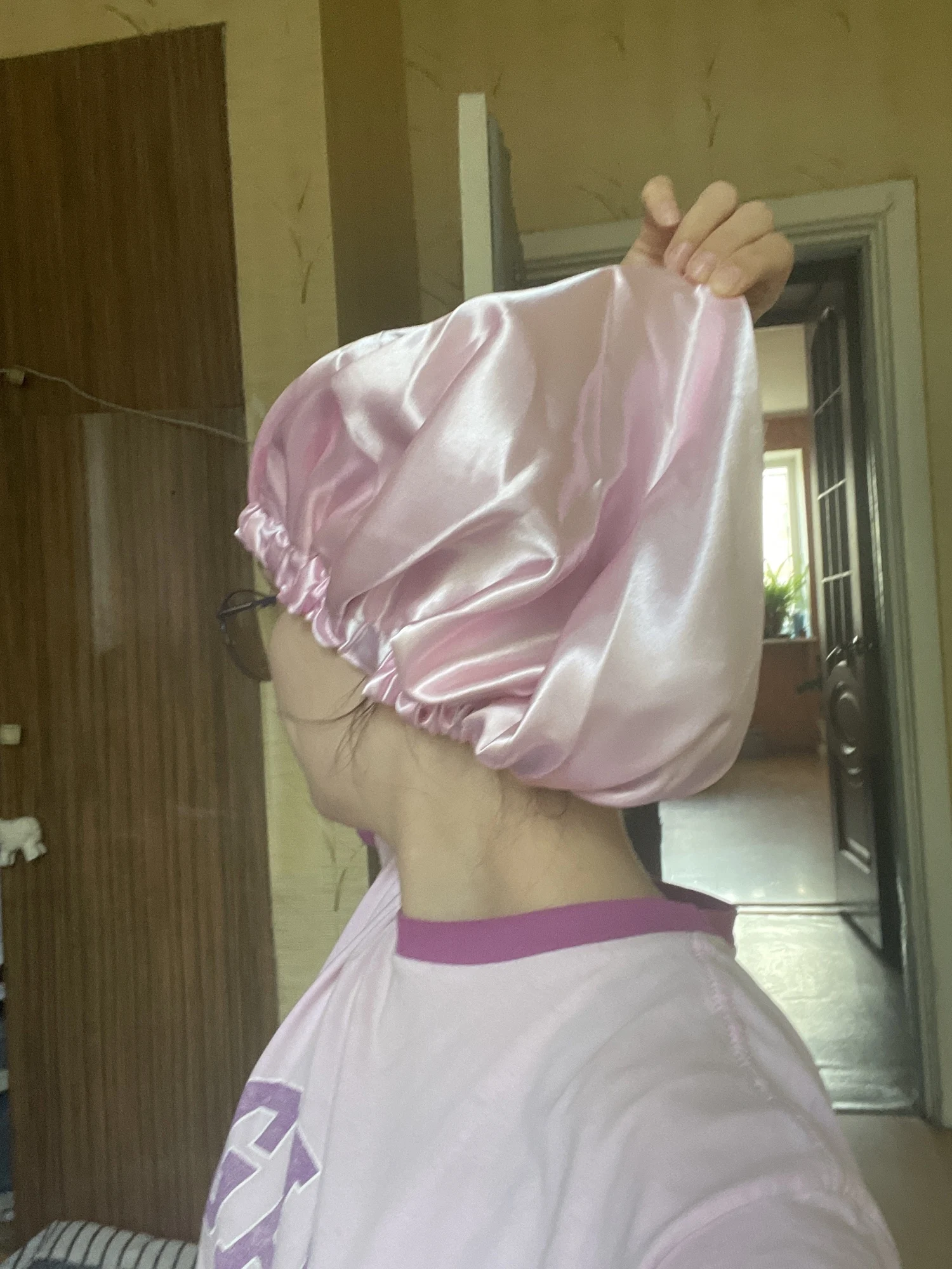Шапочка для сна женская, шелковая, на широкой резинке Женский атласный чепчик для сна, шапочка для волос, шелковая шапка, двухслойная двусторонняя регулируемая шапка, пружинящие аксессуары для волос