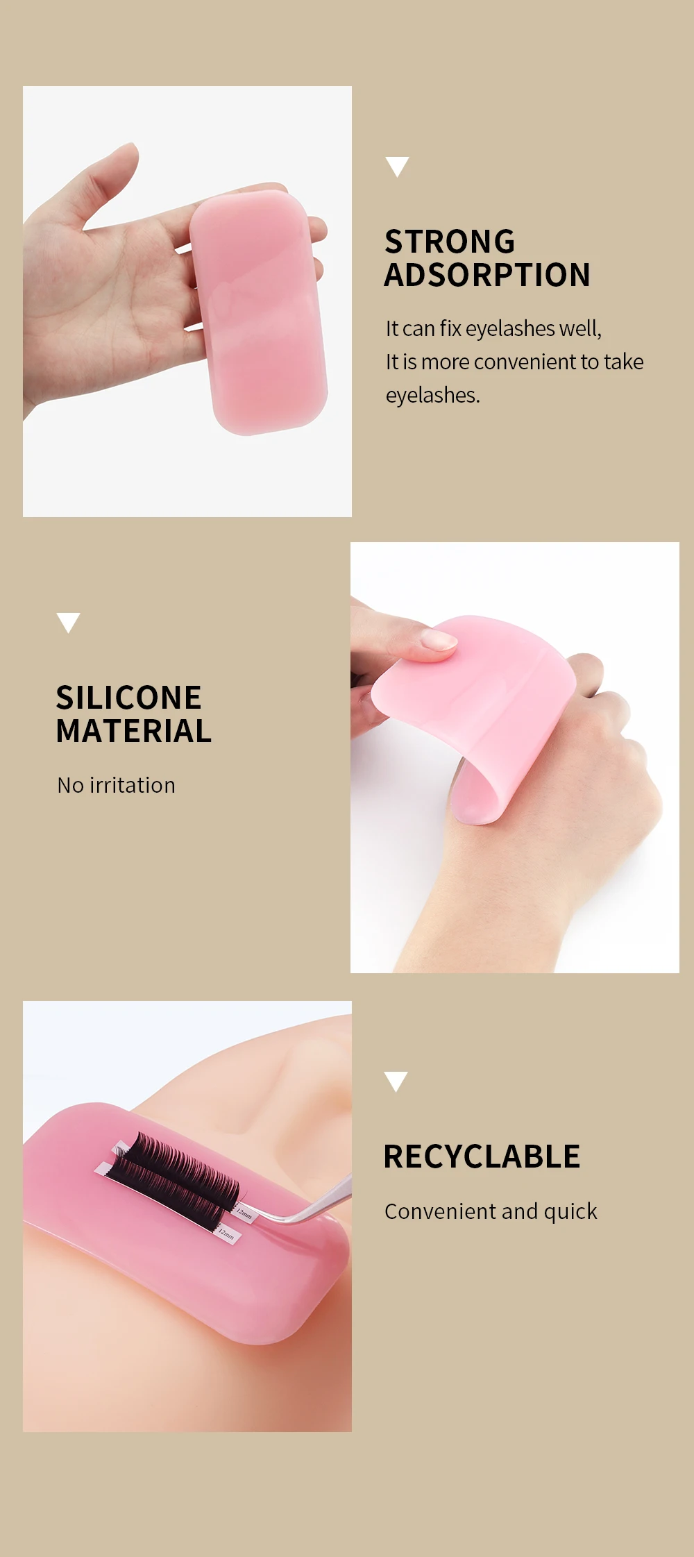 1. Он изготовлен из силикона, имеет прорезиненную текстуру, так что, когда вы роняете ресницы, это место, где он будет оставаться.2. Этот товар отлично подходит для новичков в области ресниц, которым трудно подобрать ресницы.3. Достаточно толстый, чтобы не повредиться от кончиков пинцета.4. Силиконовый материал, антистатический, хорошая Адсорбция, чтобы помочь пинцету закрепить ресницы во время прививки.5. Можно положить на руки, лоб и стол, легко чистить, многоразовые.
