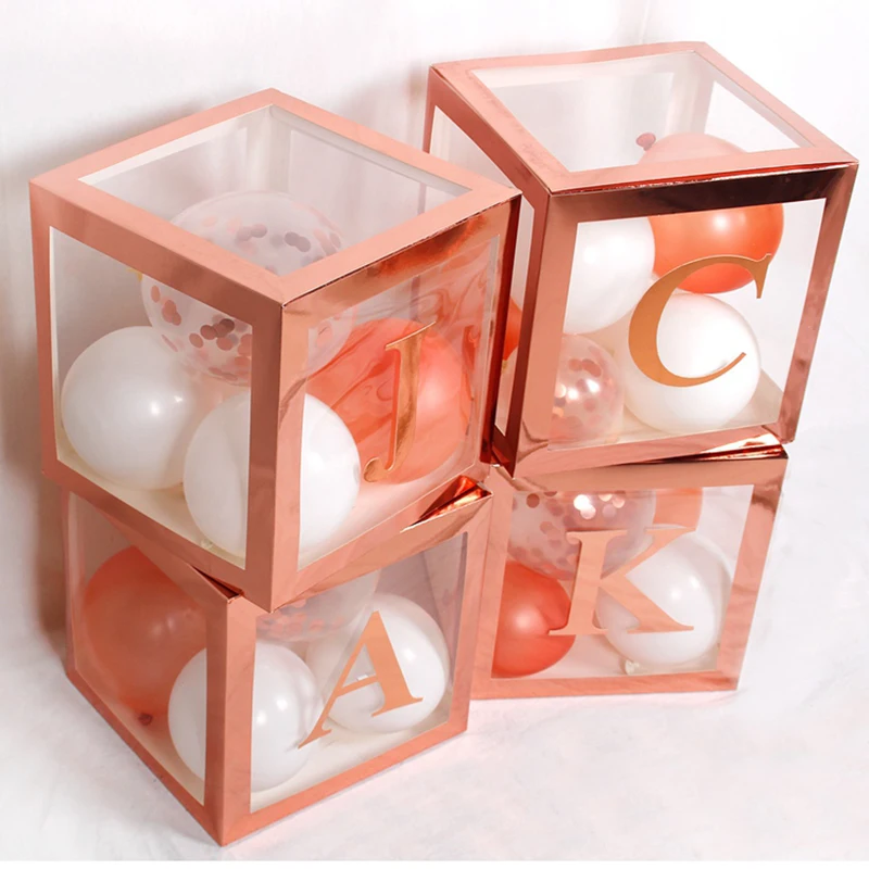 Розовое золото A-Z письмо воздушный шар прозрачная коробка счастлив...