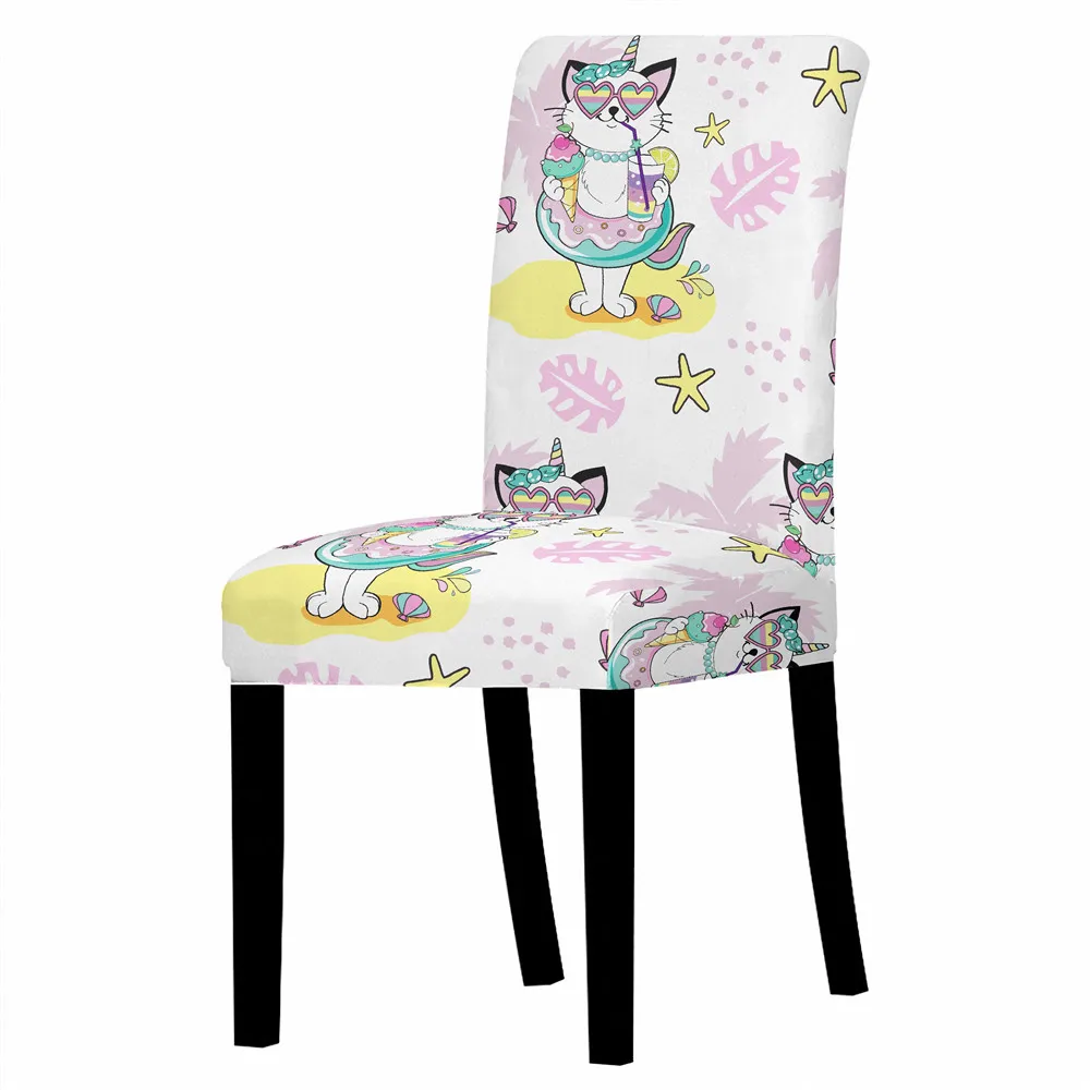 Чехлы с мультяшными животными для стула стрейч для столовой, отеля, банкета, стула, защитный чехол