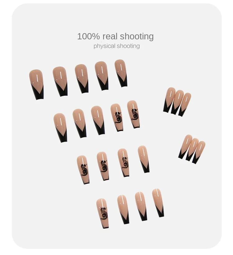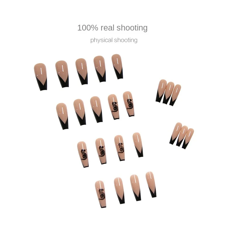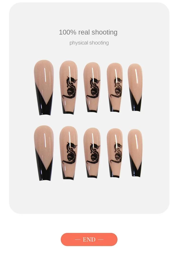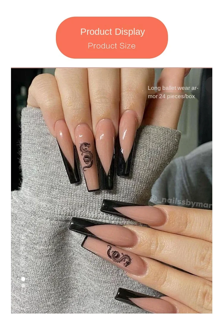 24 шт. накладные ногти с черным драконом V форма дизайн длинный гро...