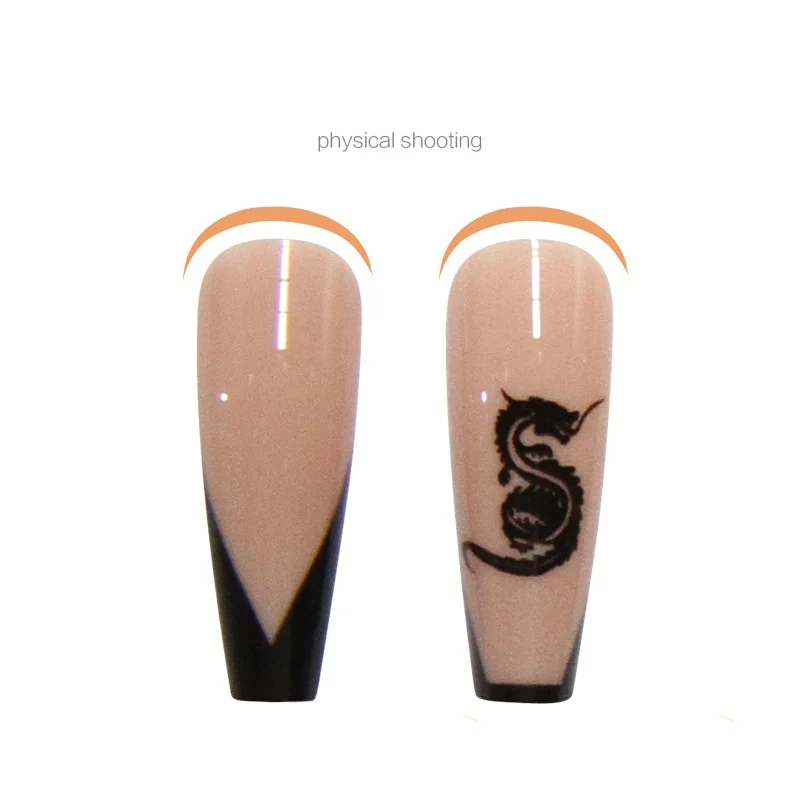 24 шт. дизайн ногтей Французский съемный износ фигура дракона длинный балетный акриловый пресс на поддельные ногти кончики Готовые накладные ногти с клеем