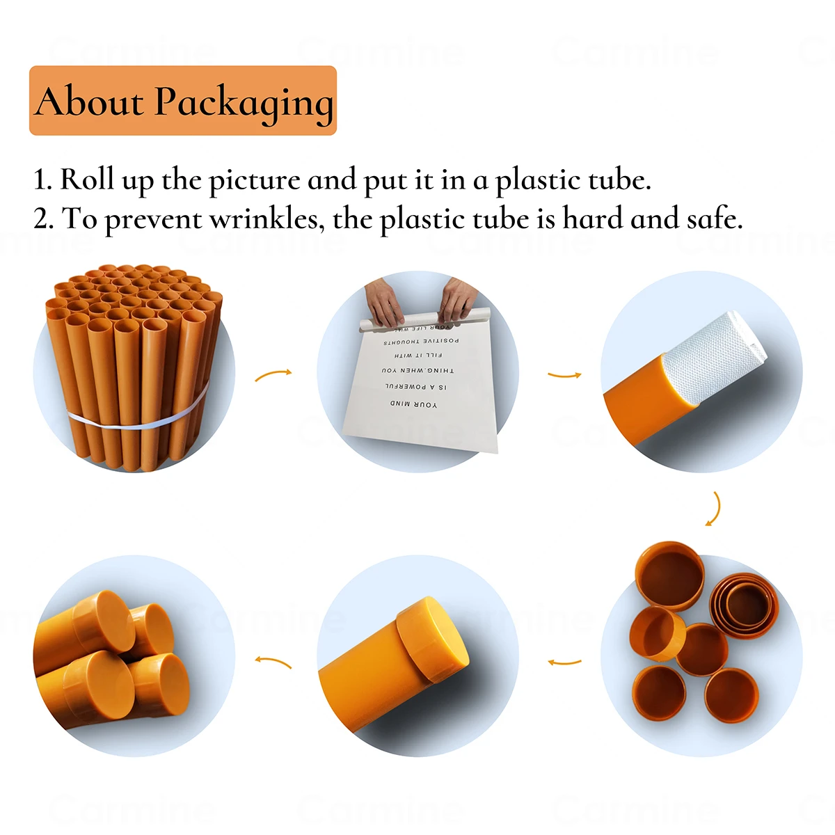 В нашем магазине картины холста до 20 см (7,87 дюйма) будут отправлены в конвертах, но более 20 см будут отправлены в твердой и безопасной трубчатой упаковке.