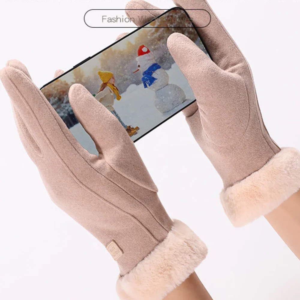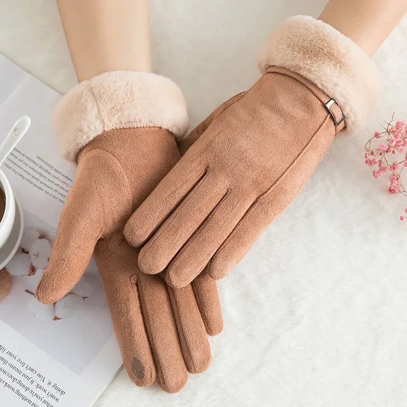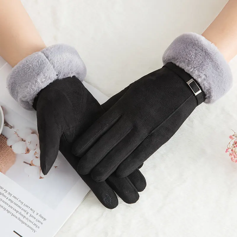 Женская зимняя искусственная термо теплая Женская замшевая ткань ветрозащитный сенсорный экран симпатичная Пряжка варежки рождественские подарки для девочек N915
