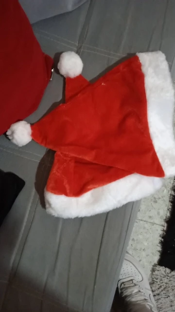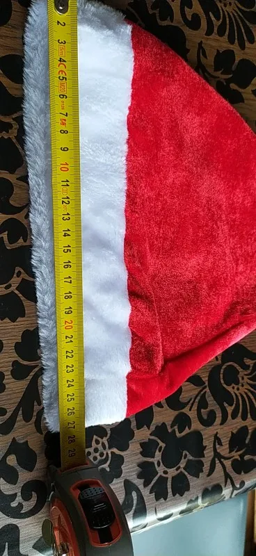 Взятый в взрослом размере, но слишком маленький, даже для женщины!!! Качественный белый край, с другой стороны, для красной части шляпы качество легче и не очень мягкое, вдруг очень разочарован. Короче говоря, я бы, к сожалению, не носил его, потому что слишком мал, кроме детей... Еще несколько см (около 3 см), так что это хорошо. Для максимальной окружности головы 54 см!
