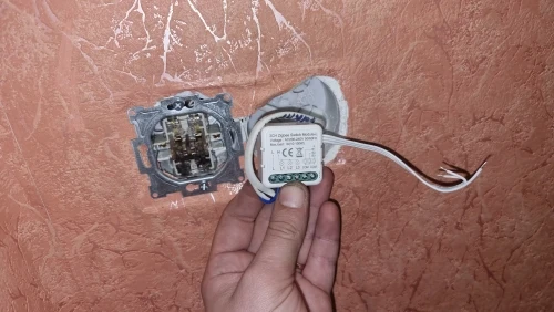 это то что нужно, найти двойные выключатели нереально, с этим реле все решил - в штатный выключатель подходит прекрасно. Шлюз Sonoff 3.0 увидел тут же через eWelink, а через eWelink пробросил в Алису. Физические выключатели работают по wi-fi работает и не важно в каком положении физический выключатель. Чудеса! Однозначно лучшее решение на сегодня. Вы не зависите от внешнего вида выключателя и не зависите от отсутствия нулевого провода!!!