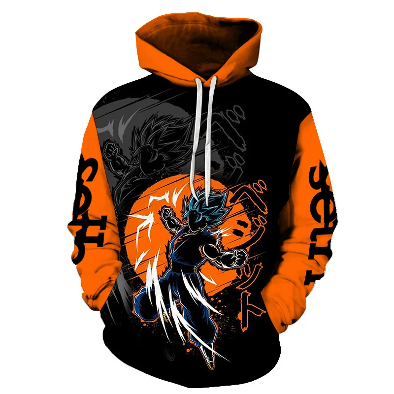 Толстовка мужская с 3D-принтом, повседневная кофта оверсайз с круглым вырезом, Сон Гоку, драконий, Свитшот