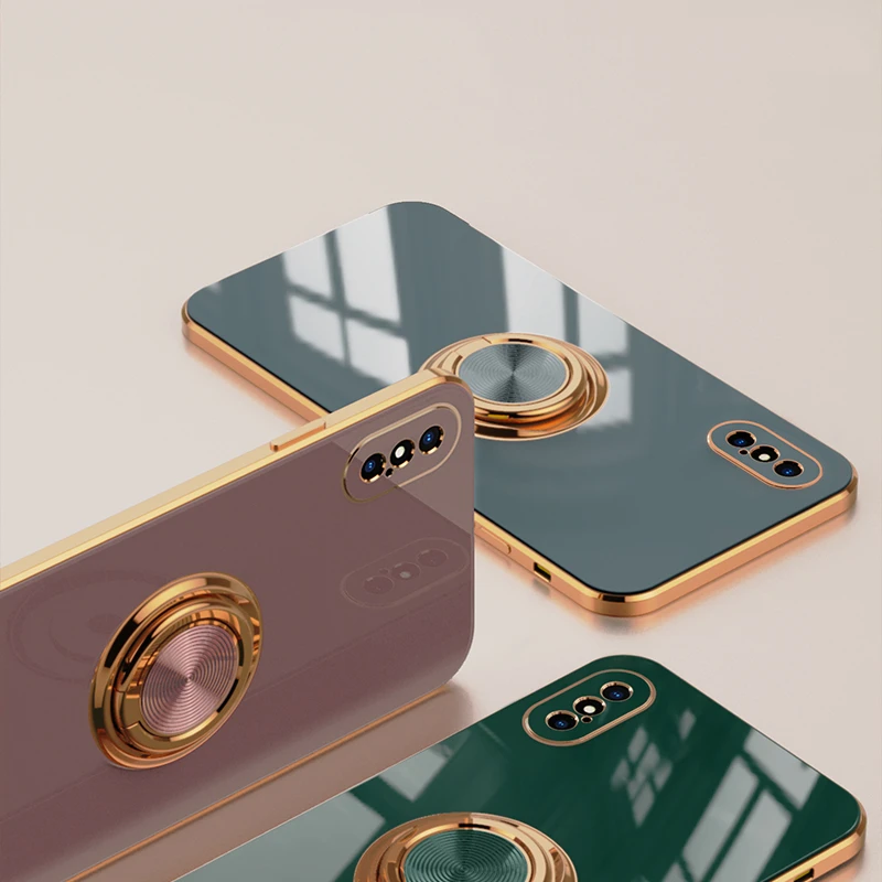 Силиконовый чехол с металлическим кольцом-держателем для iPhone 13 12 11 Pro Xs Max Mini SE X XR 7 8 Plus