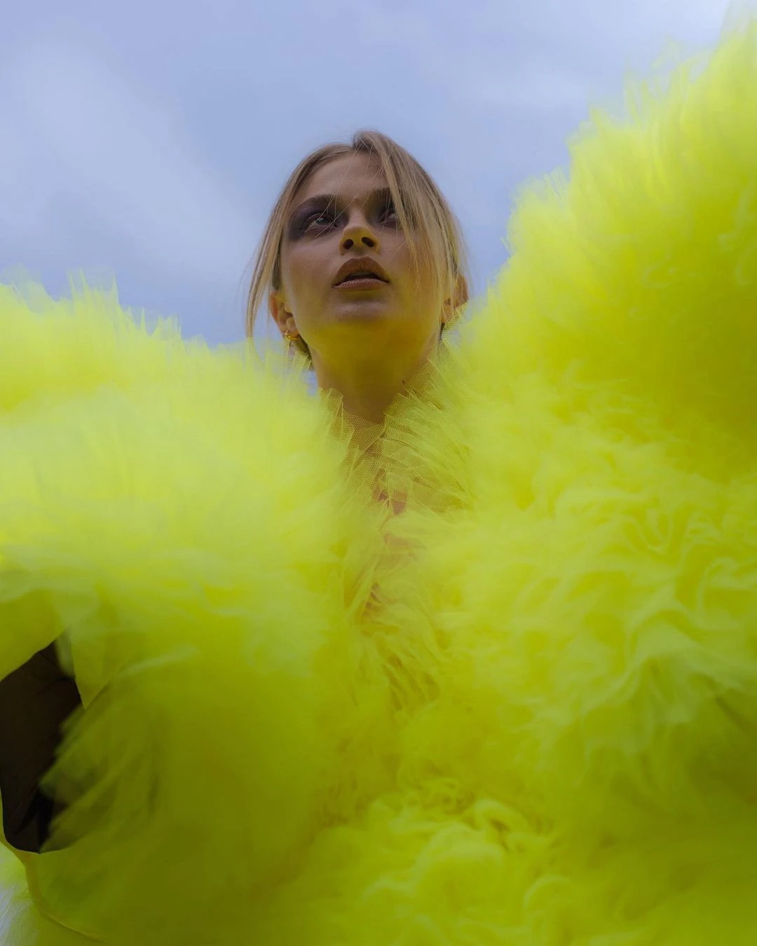 Женская пышная ярусная длинная фатиновая юбка-пачка желтого цвета с...