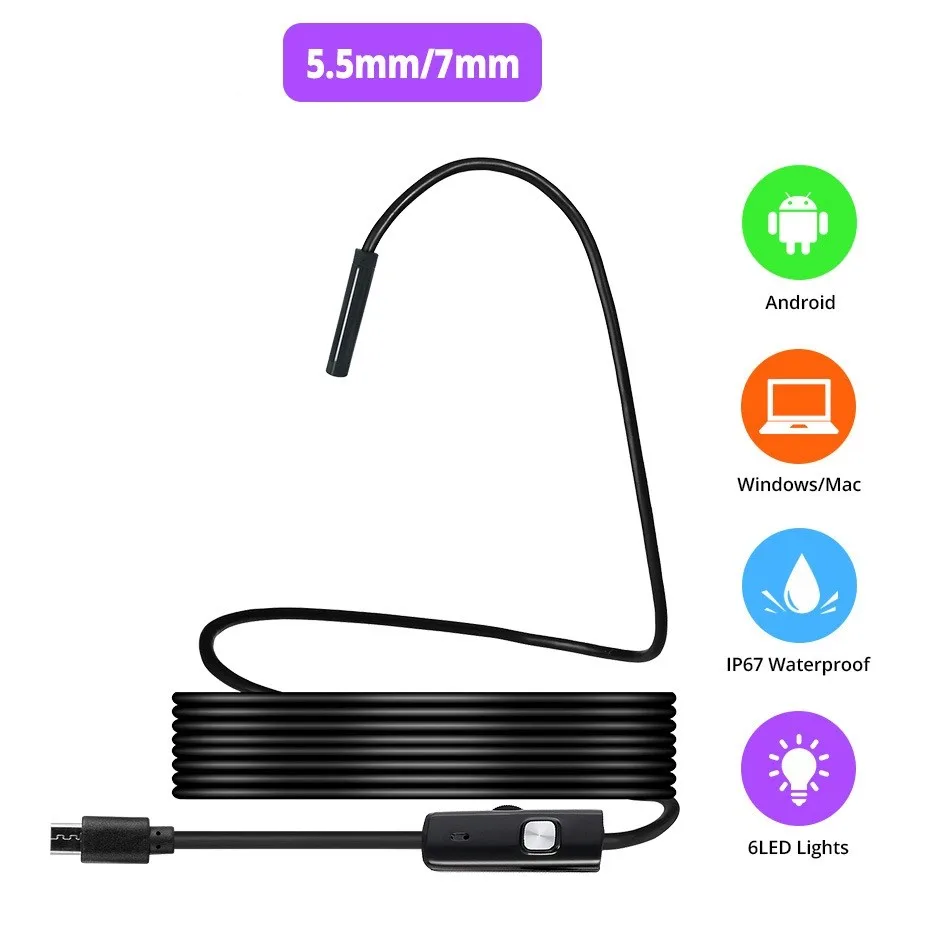 Эндоскопическая камера для ремонта автомобилей, 7 мм, 5,5 мм, IP67, водонепроницаемая, Android, Micro USB, фотоскоп, промышленные бороскопы