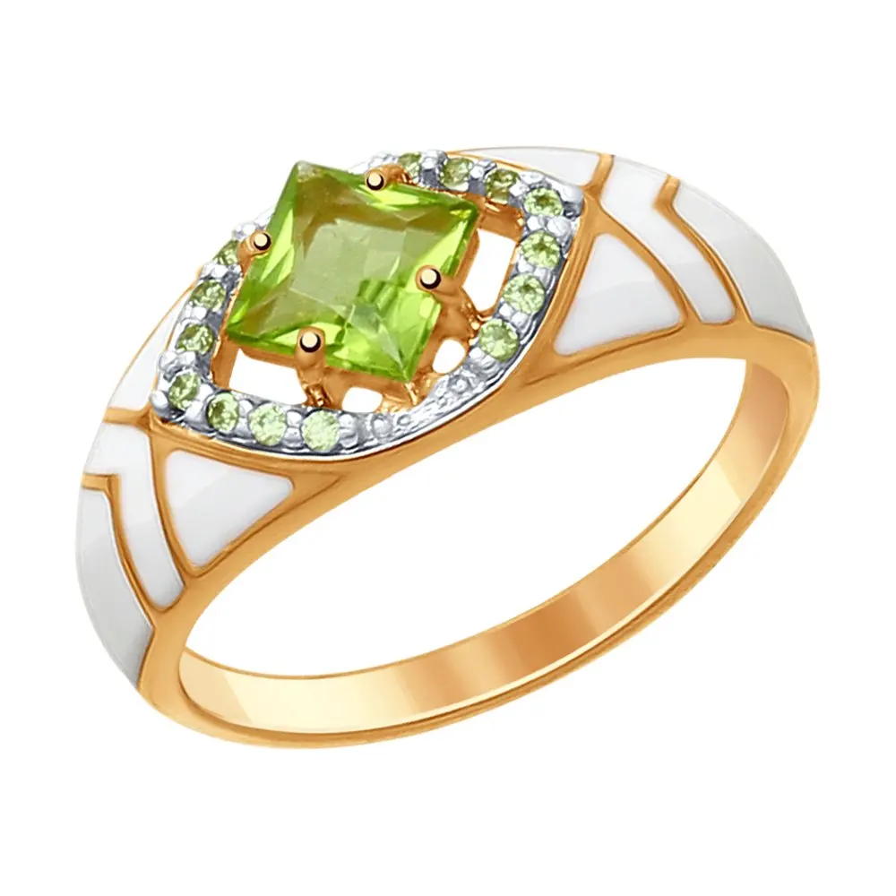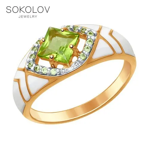 Кольцо SOKOLOV из серебра с эмалью с хризолитом и зелеными фианитами, Серебро, 925, Женское, Оригинальная продукция