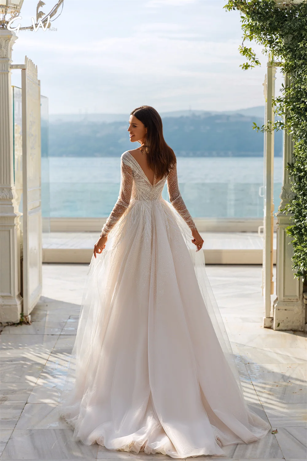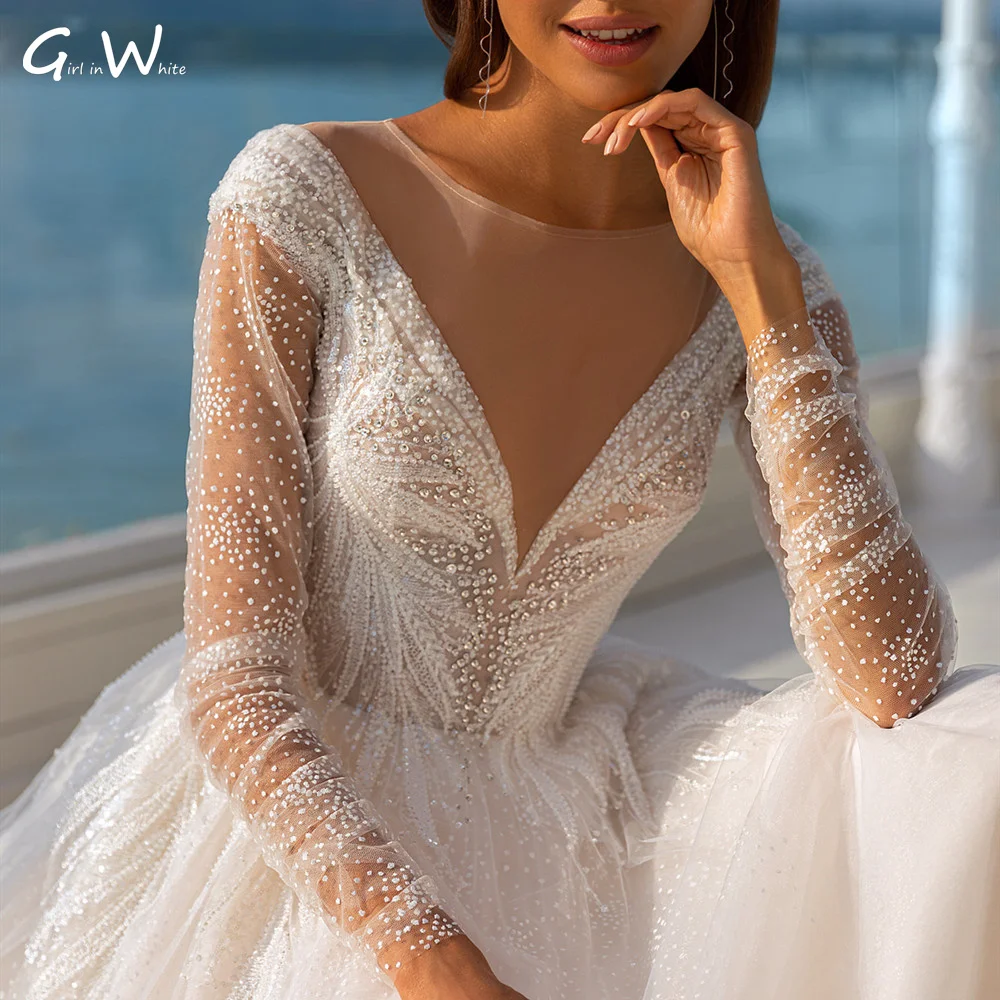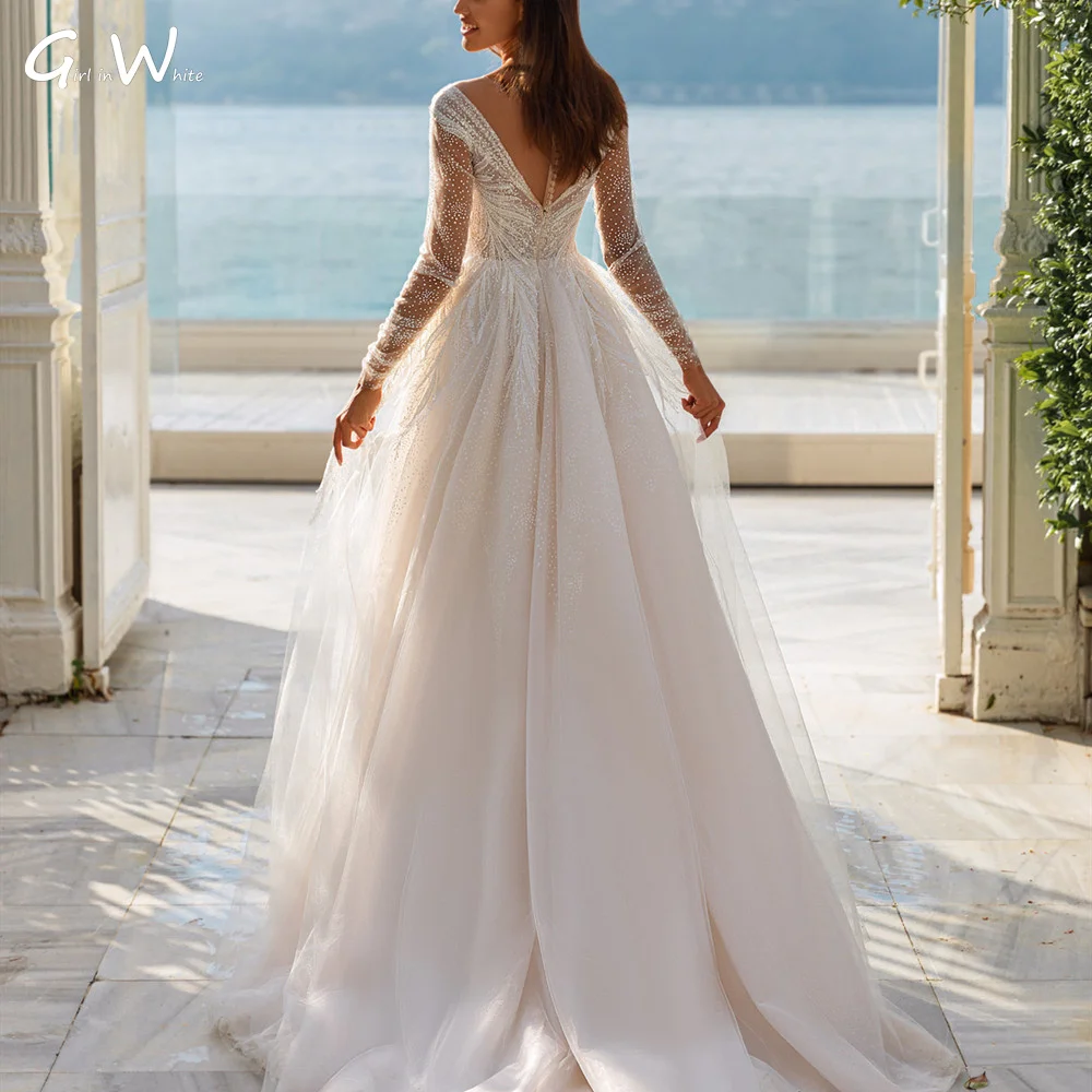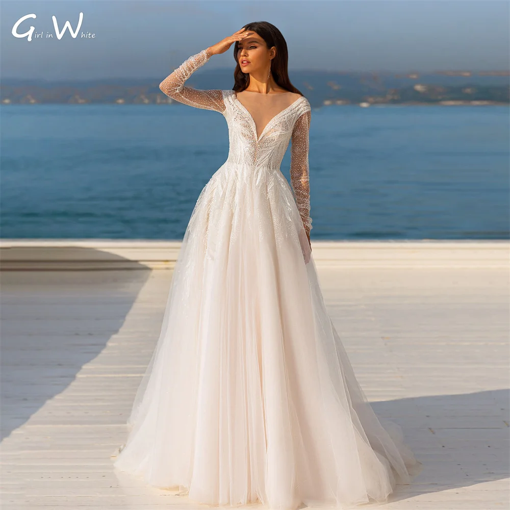Женское свадебное платье It's yiiya, белое винтажное платье с длинными рукавами, V-образным вырезом и бусинами на лето 2021