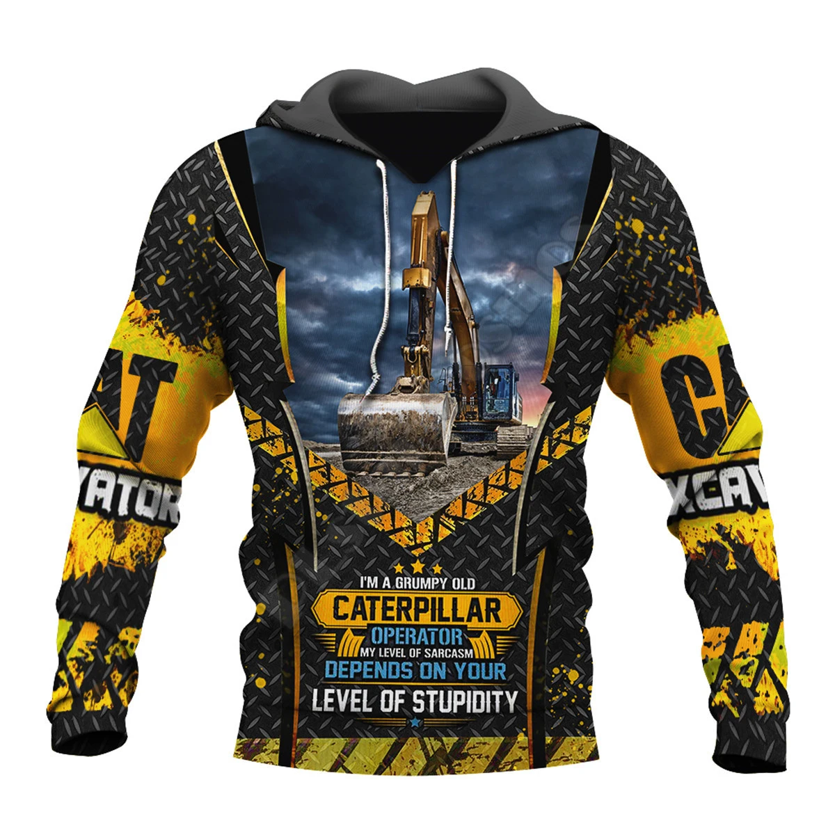 Весенняя толстовка с капюшоном, гусеничный экскаватор, 3D принт, мо...