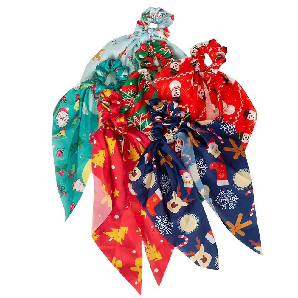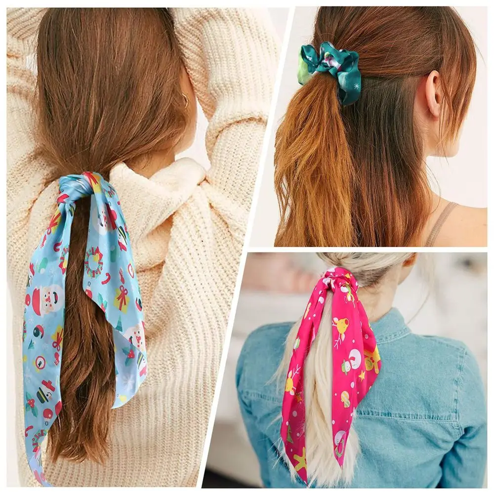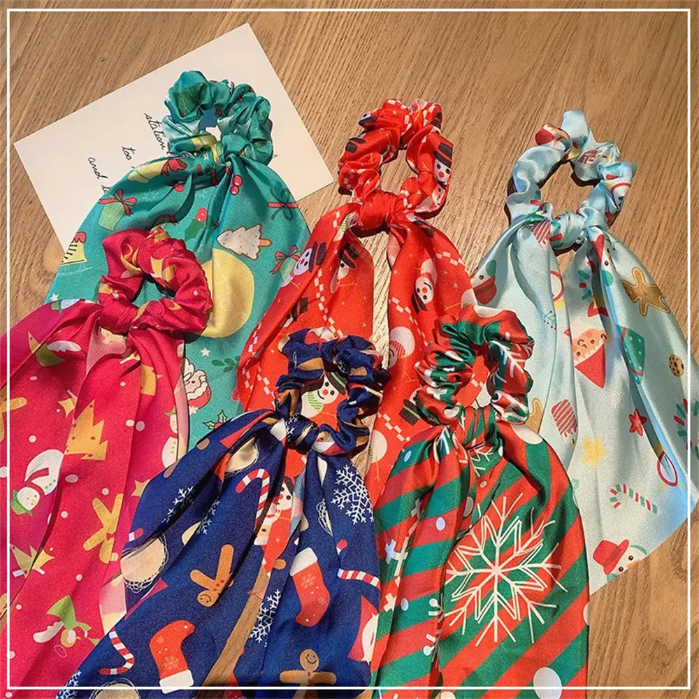 2022, рождественские аксессуары для волос, эластичные резинки для волос, Рождественская елка, снежный человек, узор, сатиновые бархатные резинки, аксессуары для волос