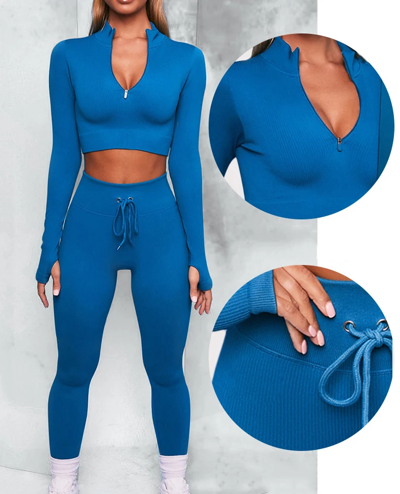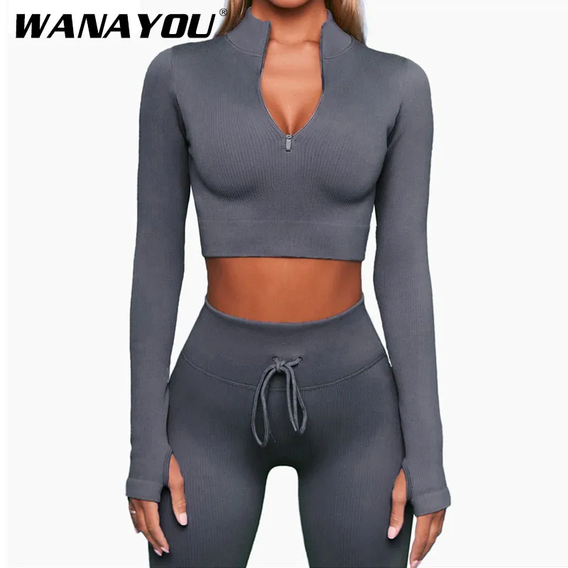 2 шт.компл. комплект для занятий йогой с высокой талией, тренировочная одежда с молнией, впитывающая пот одежда для тренировок на бедрах, рубашки с эффектом пуш-ап для бега и йоги