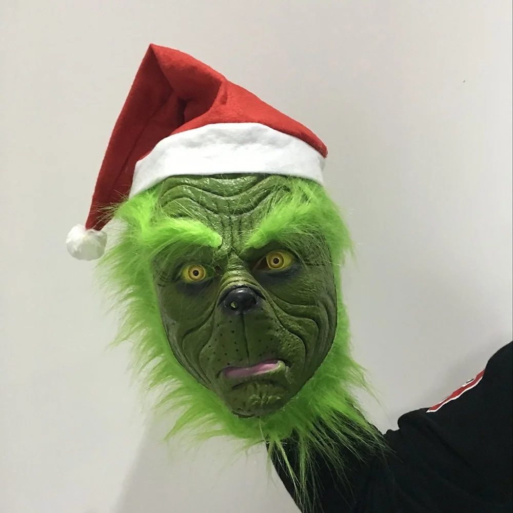 Зеленый монстр, Рождественский костюм для косплея, палантин из меха, рождественские наряды с маской, реквизит, рождественский подарок