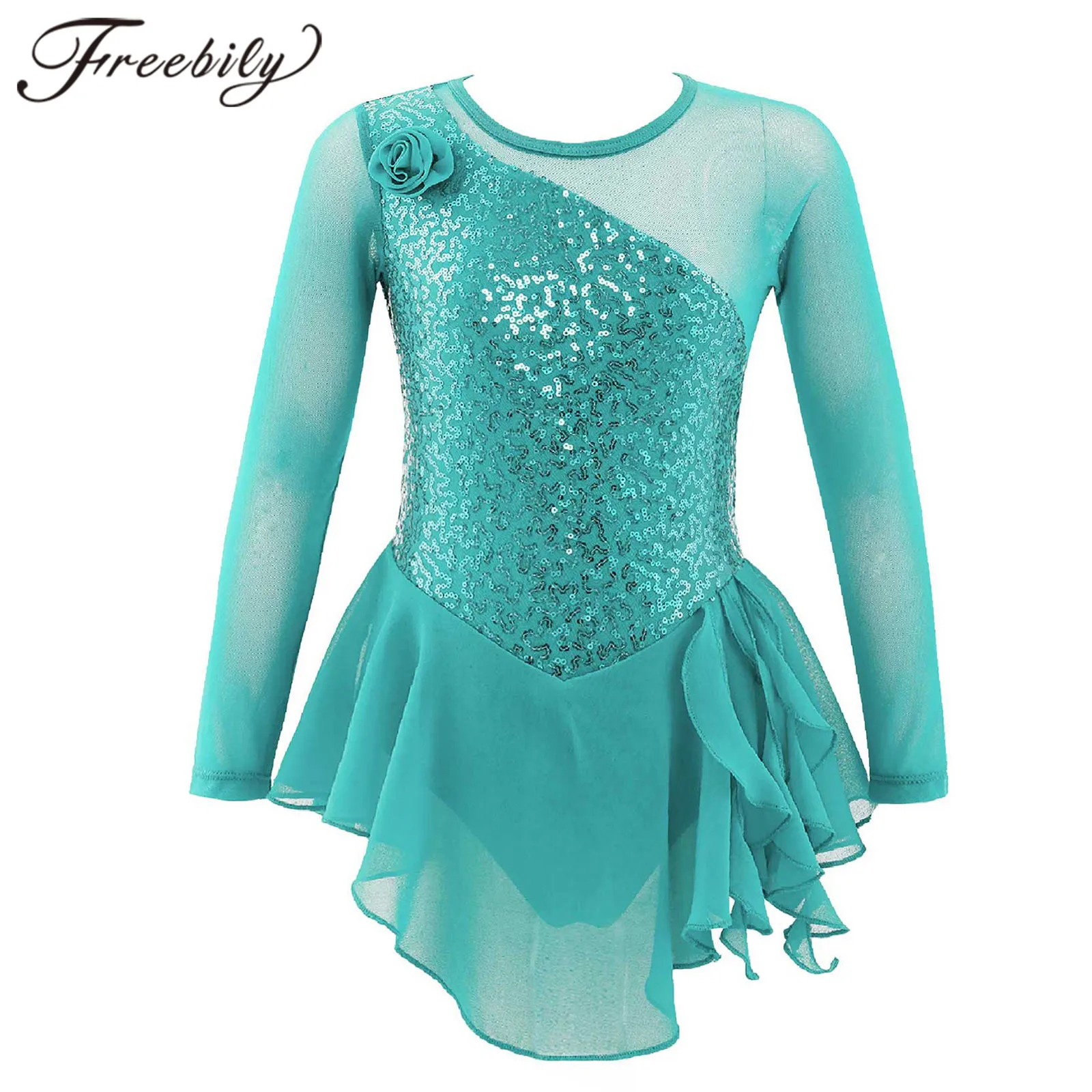 Балетное гимнастическое платье для девочек, детский танцевальный костюм с блестками, платье с длинным рукавом для фигурок, катания на коньках, одежда для выступлений и танцев